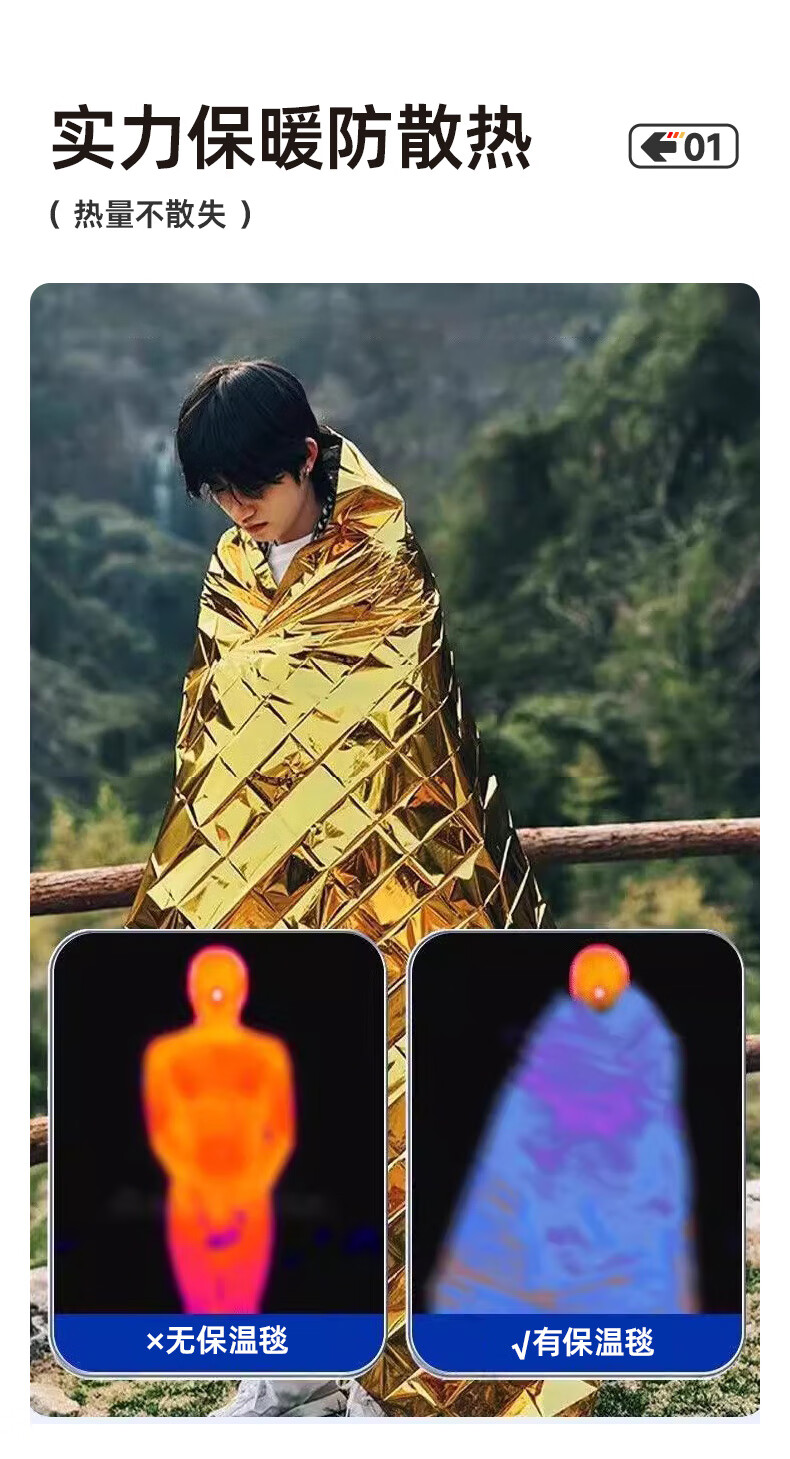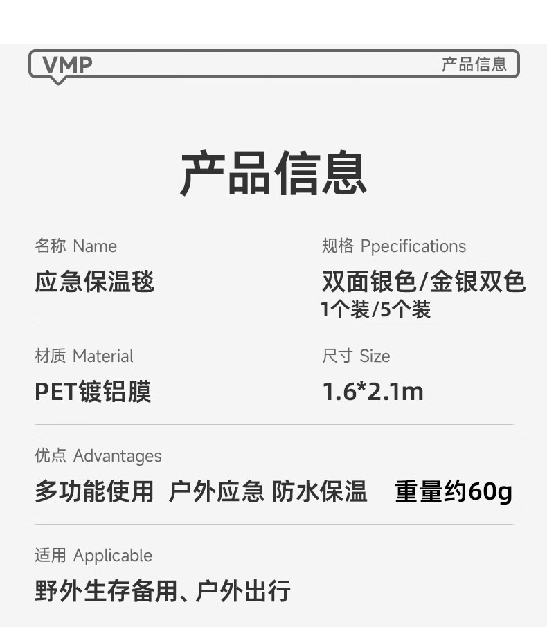 VMP outdoor emergency blanket, rescue blanket, earthquake portable survival blanket, aluminum film to prevent cold and hypothermia, thickened compressed insulation blanket, gold and silver double-sided