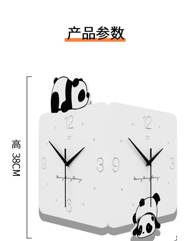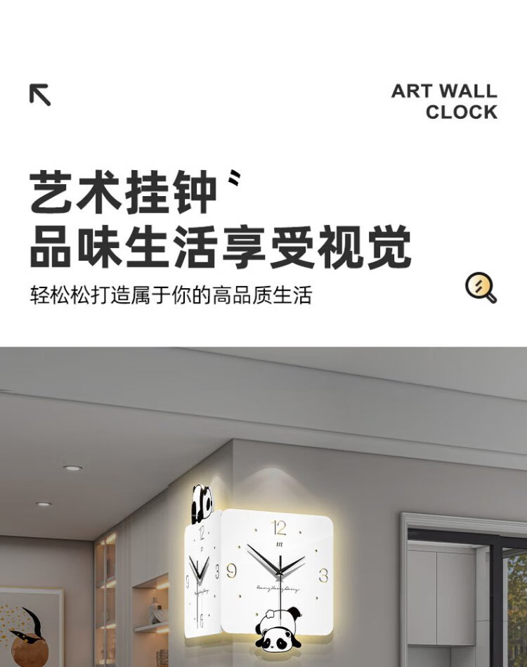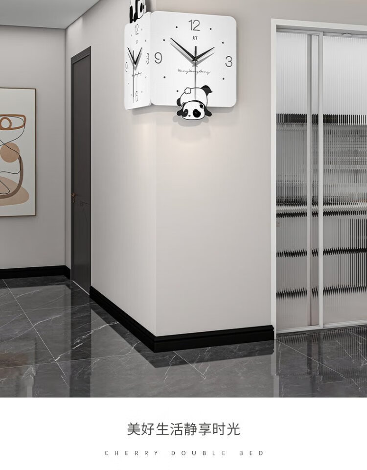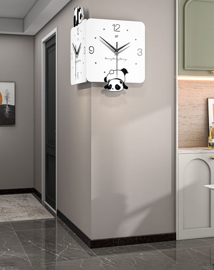 Jiujiuda restaurant panda double-sided corner wall clock living room home 2025 new clock wall hanging modern simple clock