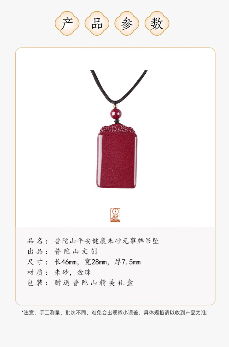 Putuo Mountain high content cinnabar pendant amulet safety buckle couple necklace male and female baby birth year gift