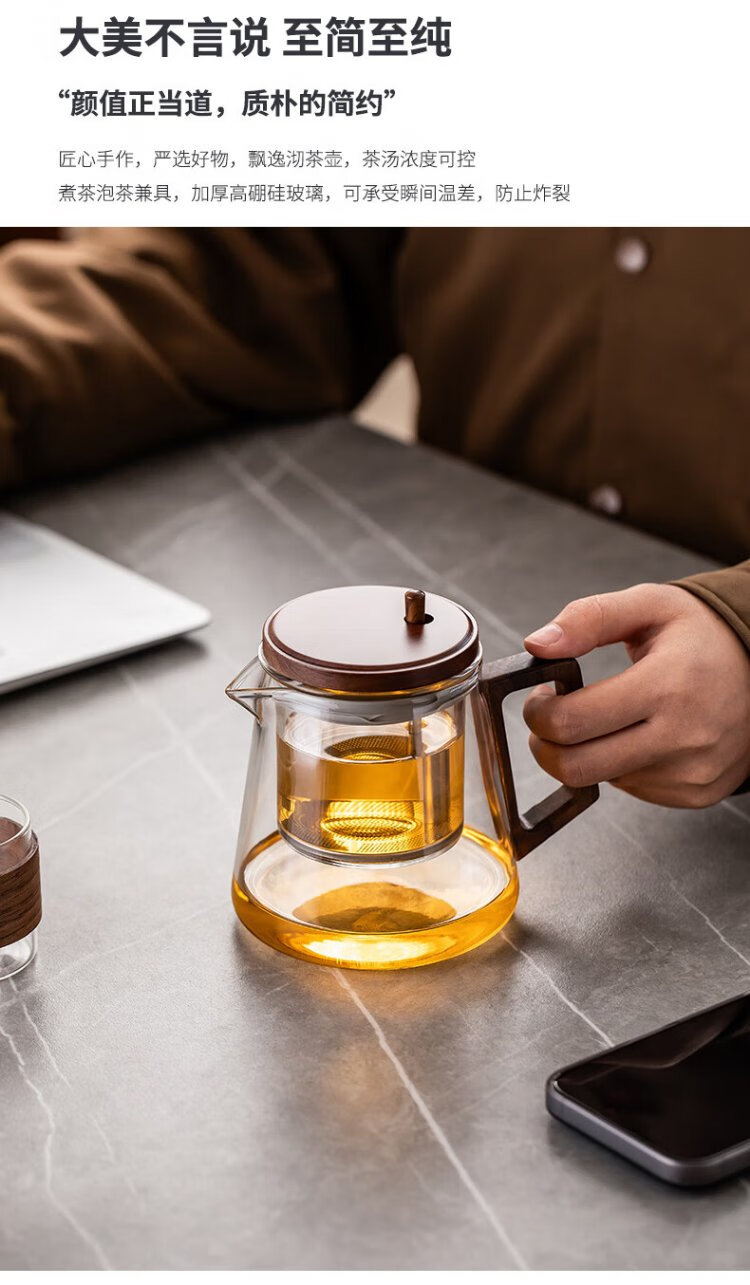 Porcelain brand tea set transparent elegant cup tea water separation glass teapot high temperature resistant office tea tea set