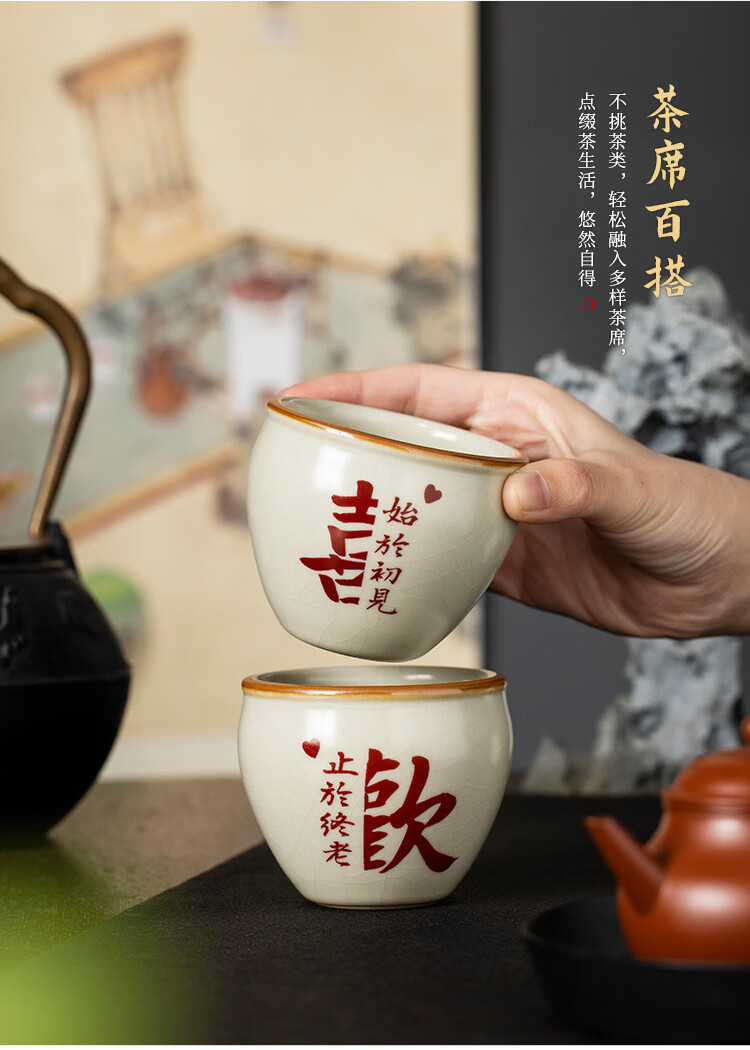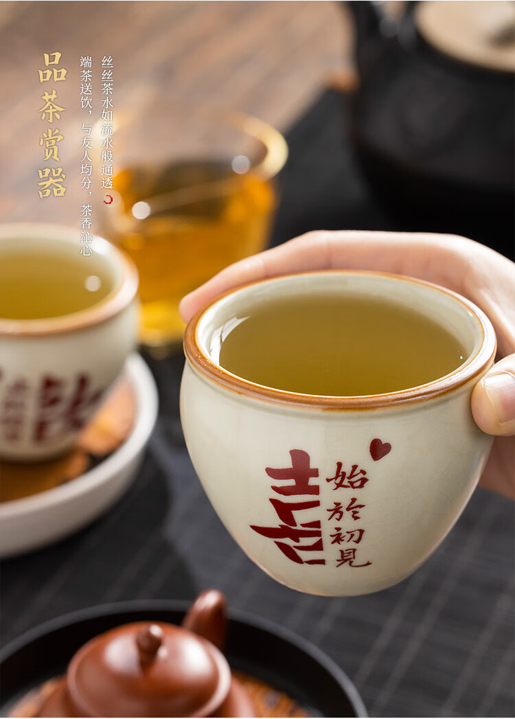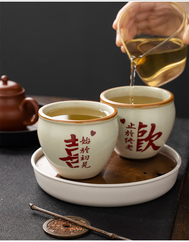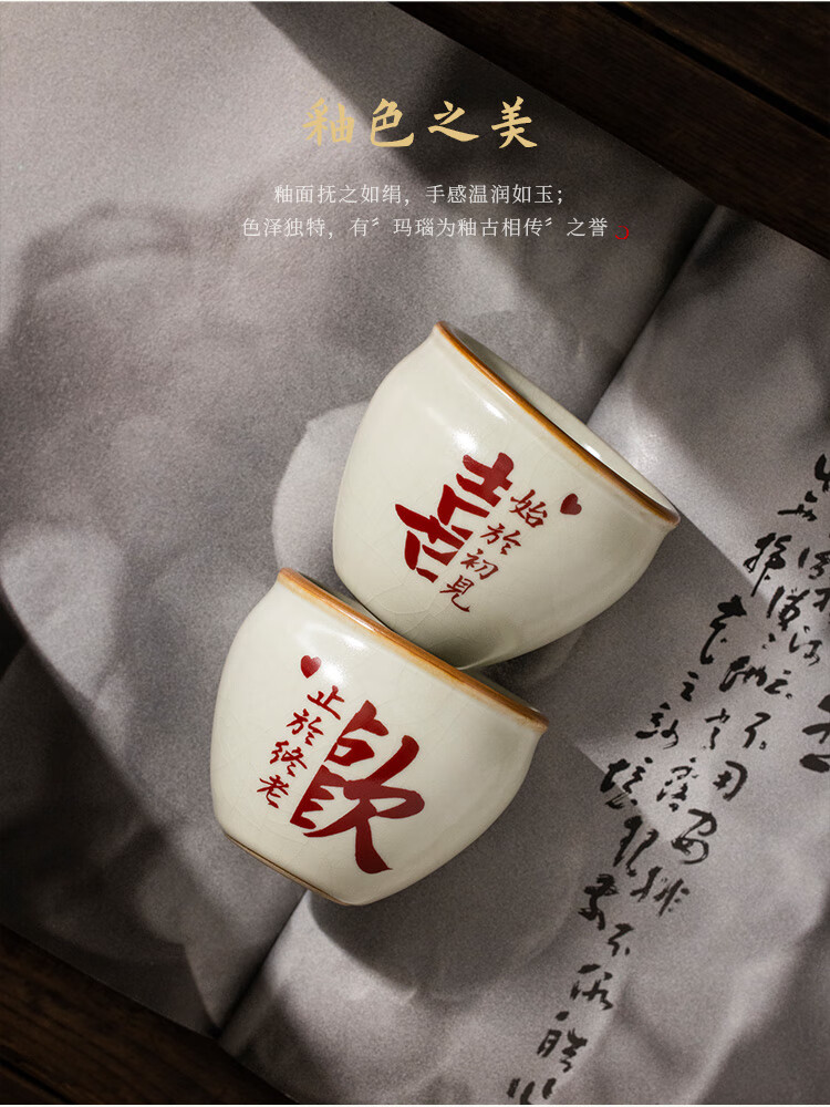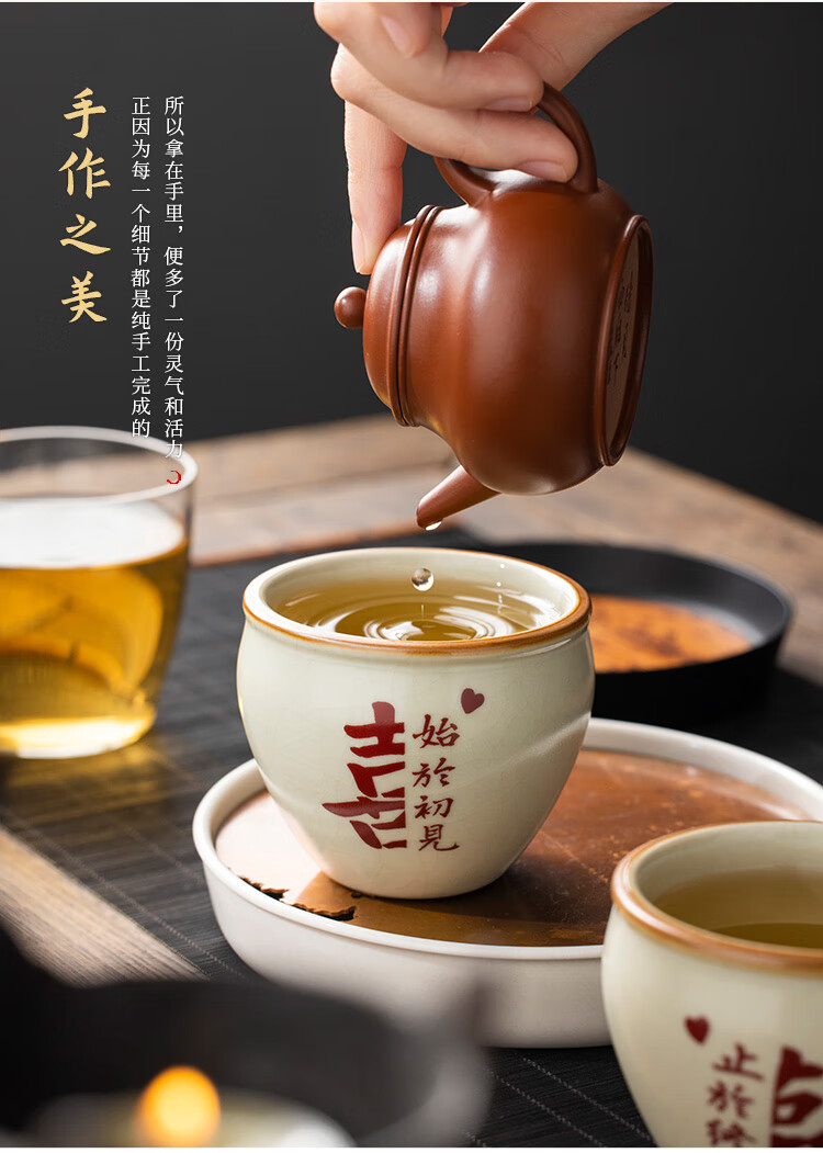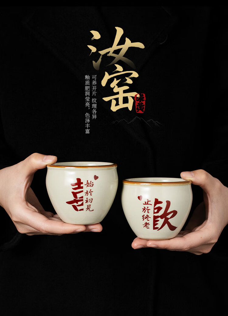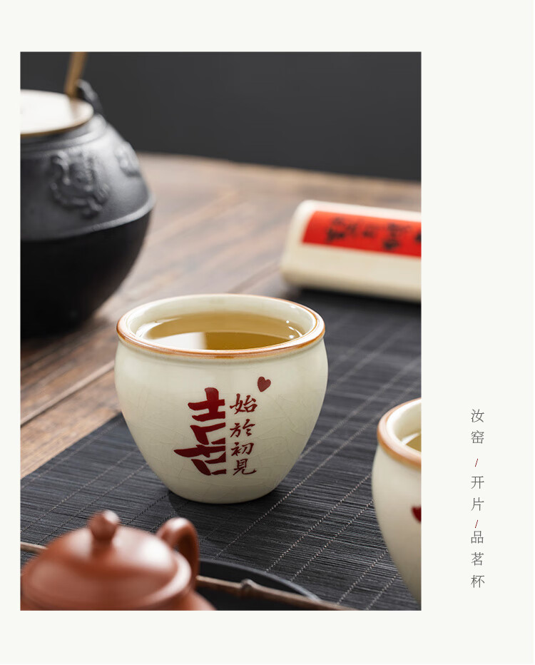 泥土故事汝窑茶杯开片可养订婚结婚礼物送新人高档实用伴手礼纪念日礼物