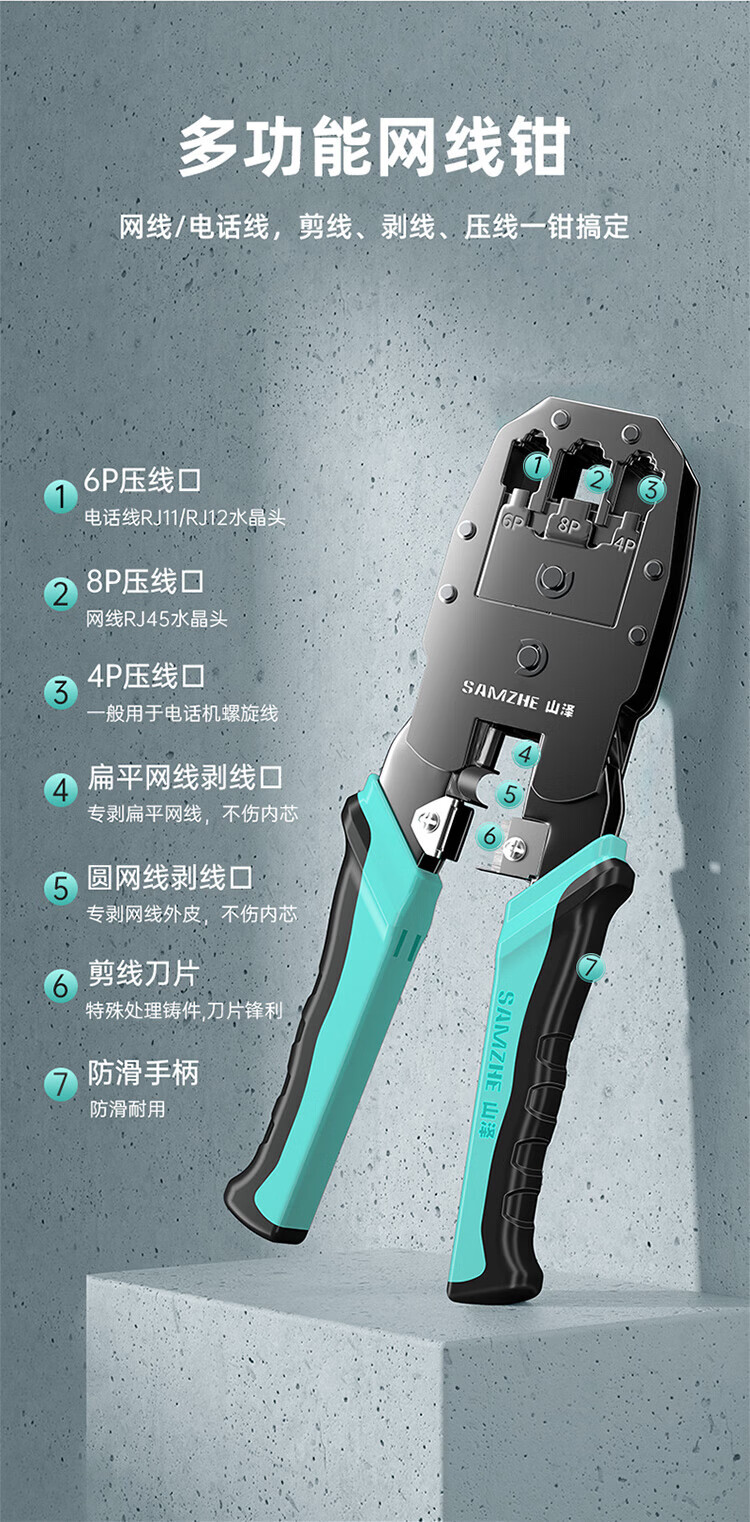 Shanze network cable pliers Internet phone crystal head crimping pliers 4P/6P/8P labor-saving stripping and cutting pliers WJ-3068