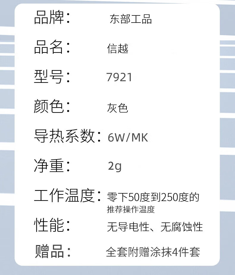 Dongbu Shinyue 7921 cooling silicone grease CPU thermal conductive silicone grease extremely fast cooling, stable and long-lasting 7921 (2g + application tool)