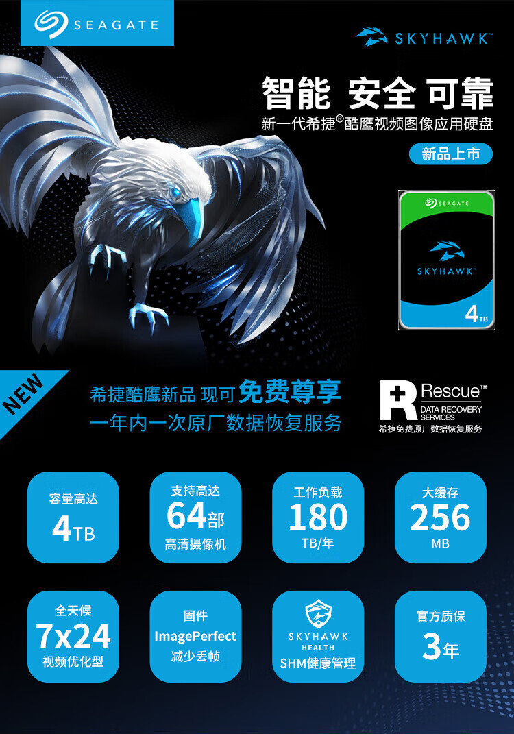 Seagate (SEAGATE) security hard drive 4TB 256MB SATA CMR vertical mechanical hard drive video storage data recovery service Seagate Cool Eagle 3.5-inch ST4000VX015