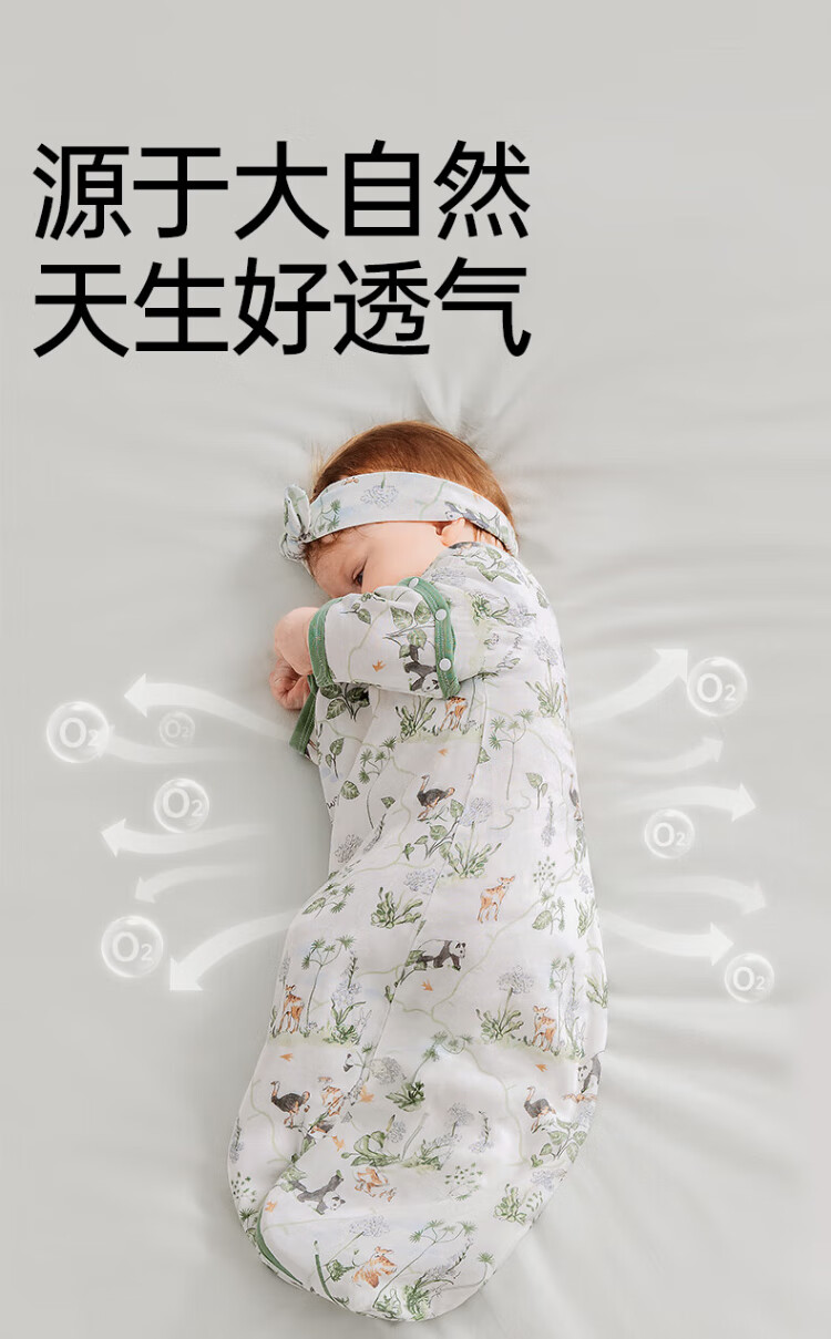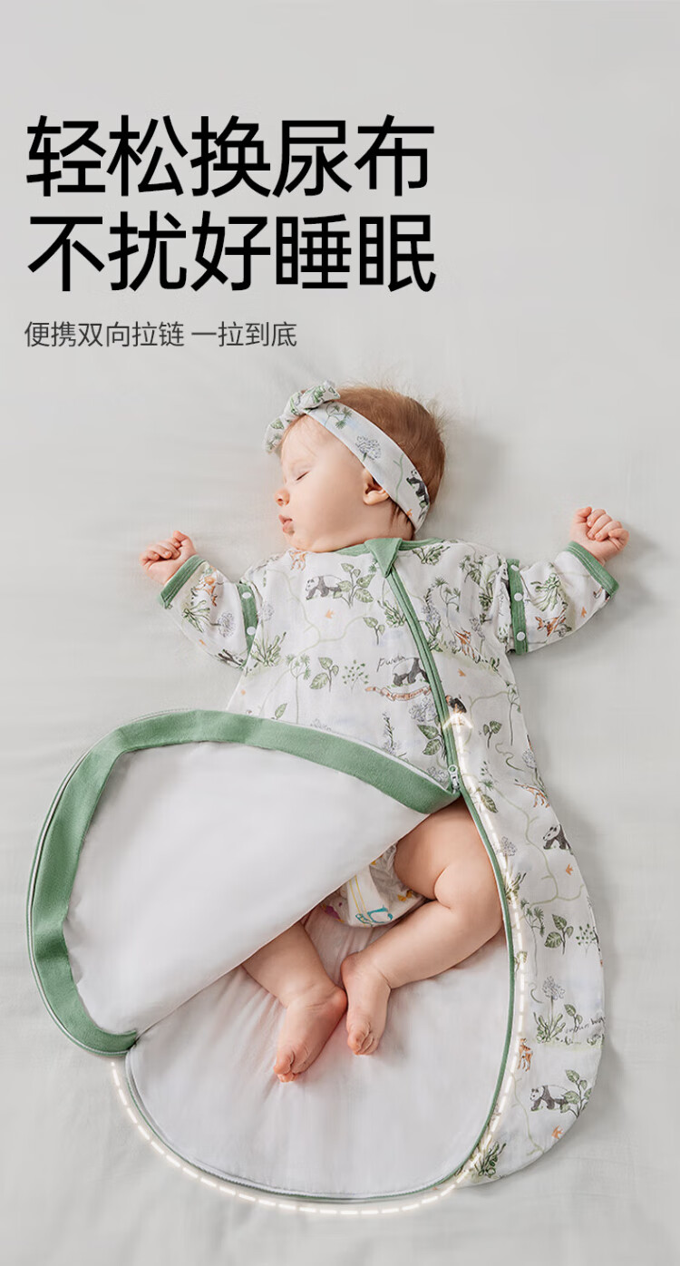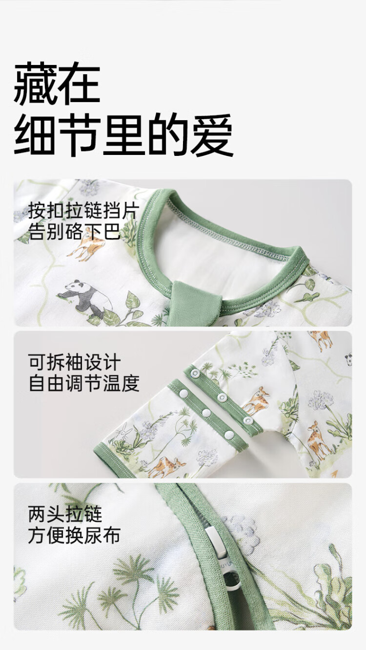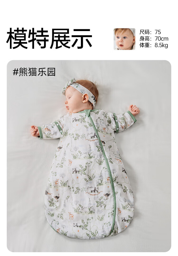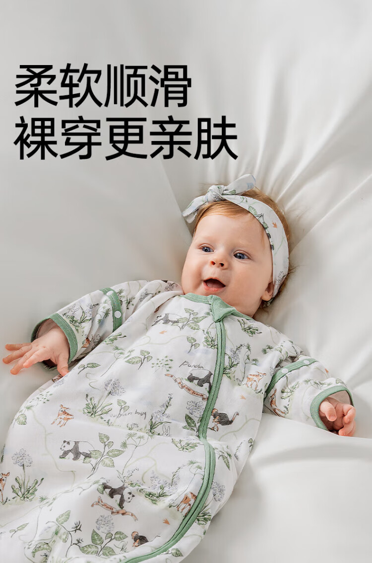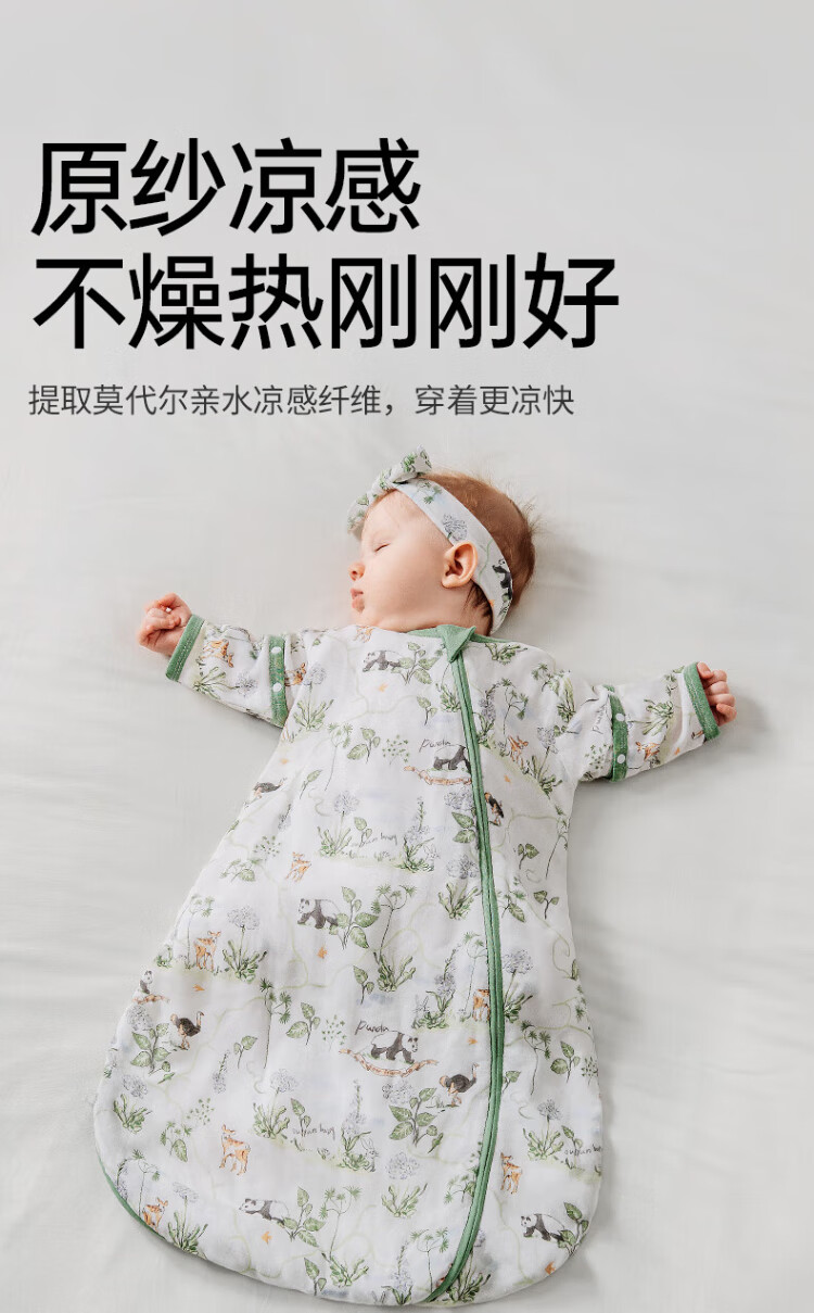 OUYUN baby sleeping bag summer bamboo cotton gauze integrated children's anti-kicking quilt sleeping bag 64 Panda Jungle 65 31