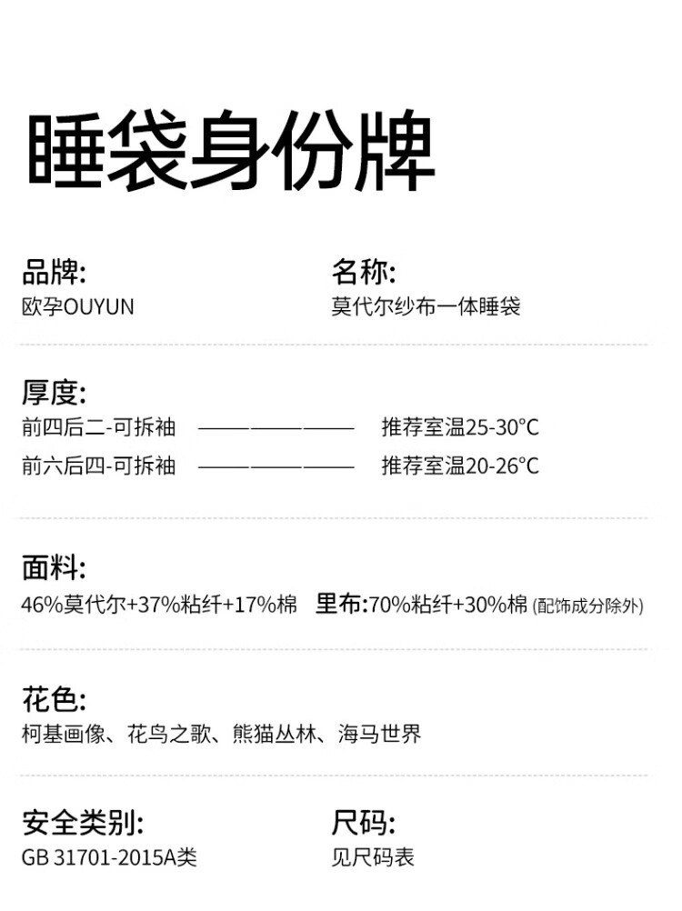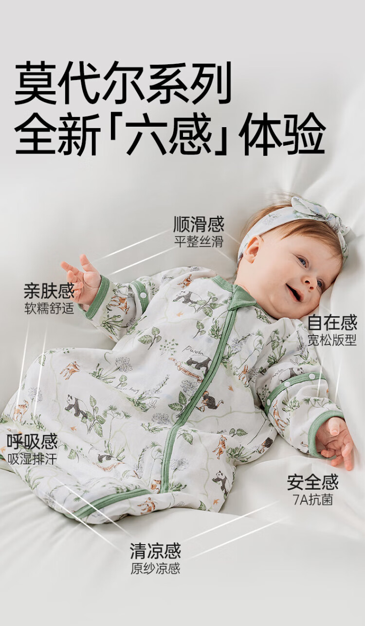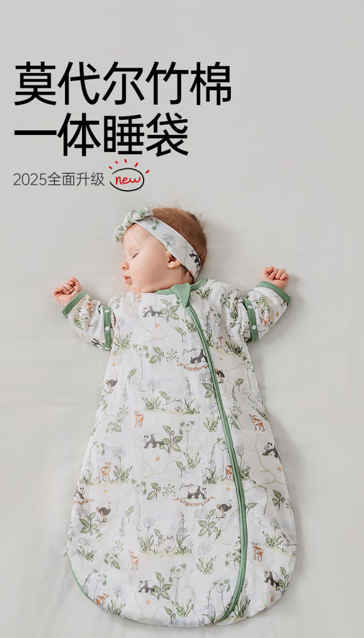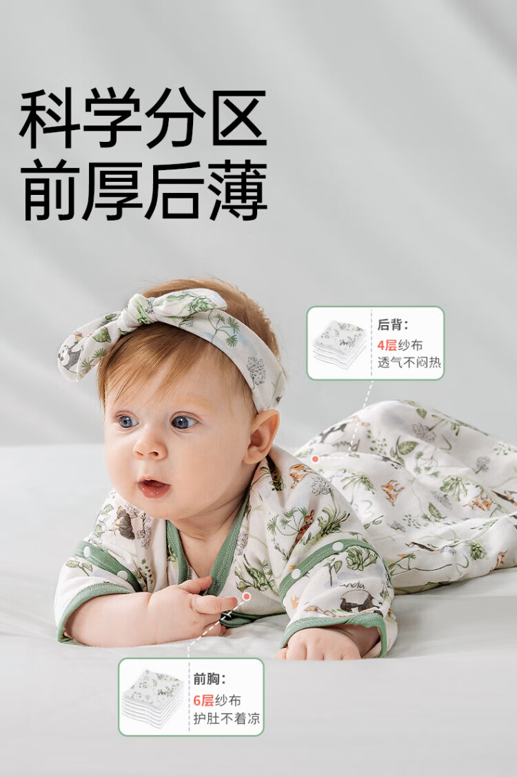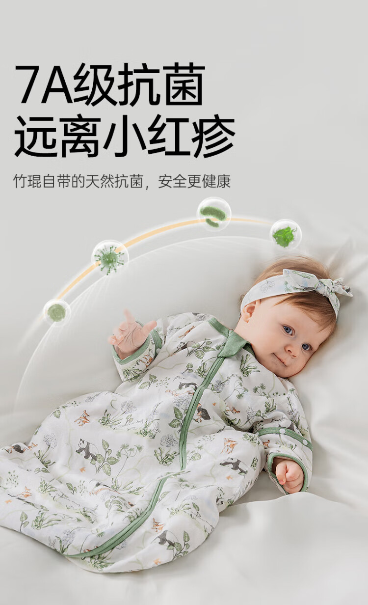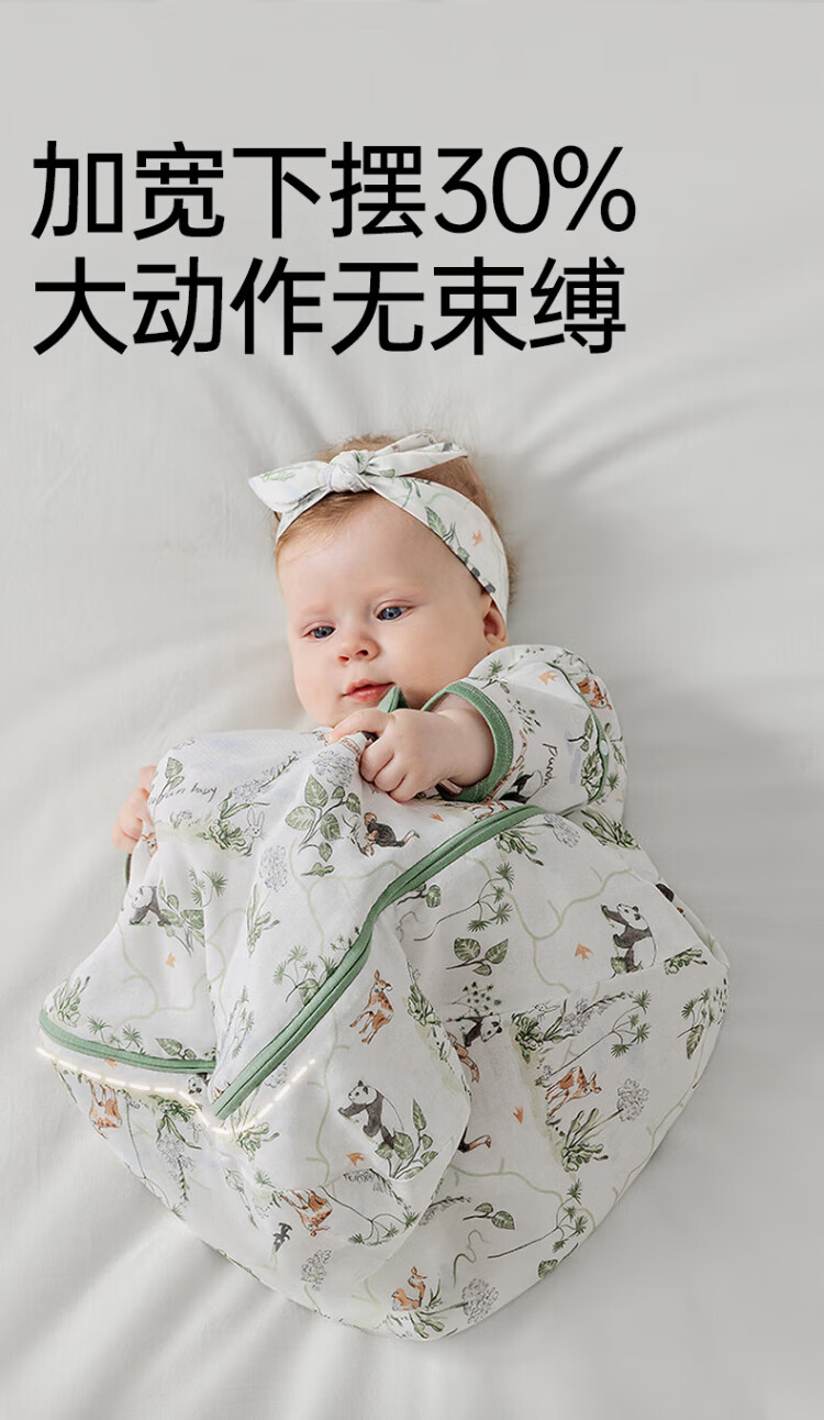 OUYUN baby sleeping bag summer bamboo cotton gauze integrated children's anti-kicking quilt sleeping bag 64 Panda Jungle 65 31