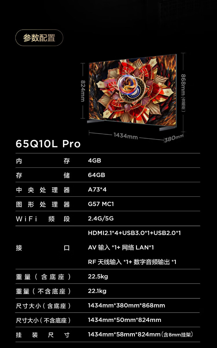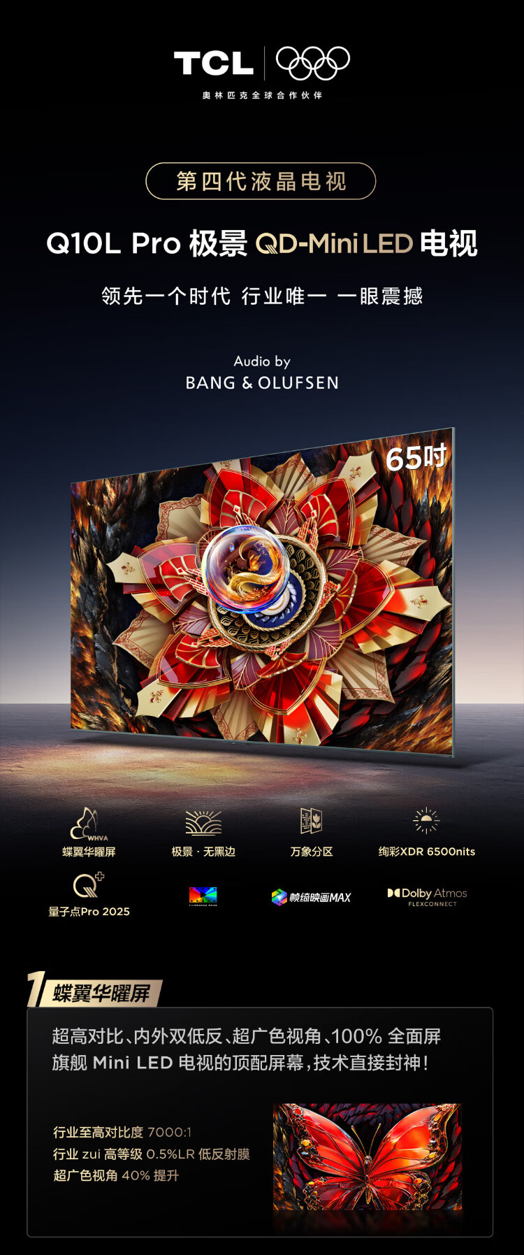 TCL TV 65Q10L Pro 65-inch Jijing QD-Mini LED Dieyi Huayao Screen Vientiane Partition Colorful XDR National Subsidy