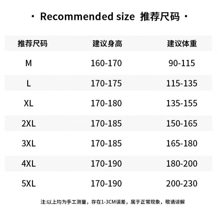 China (cm) 165 / 88-90 170 / 96-98 175 / 108-110 180 / 118-122 185 / 126-130