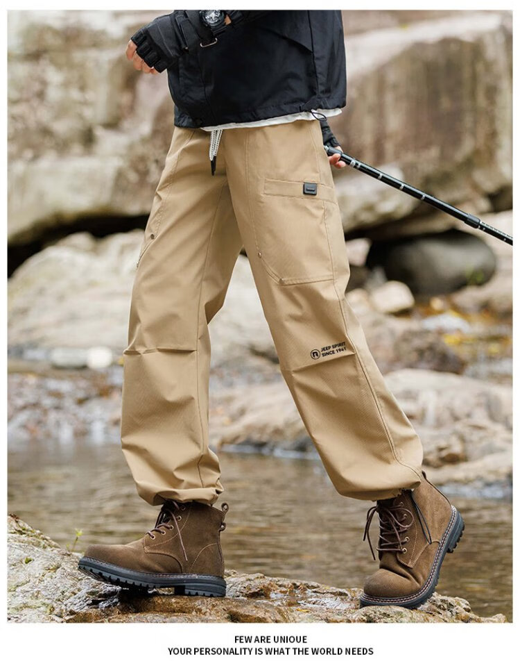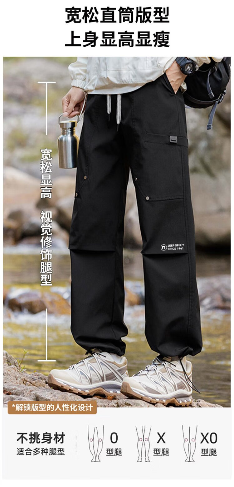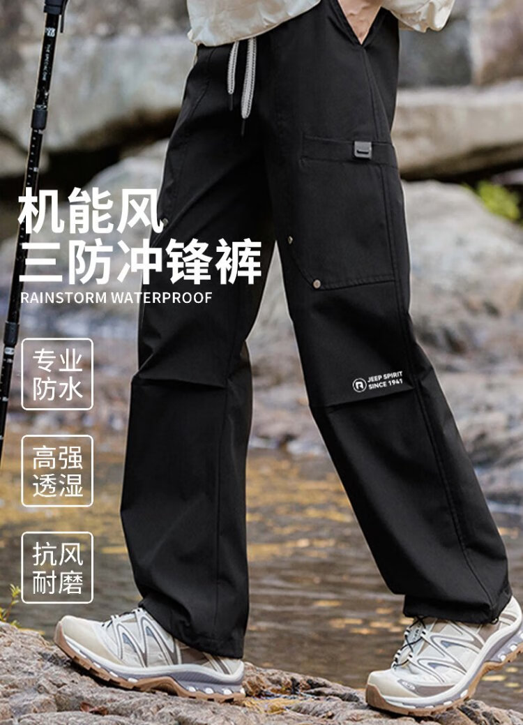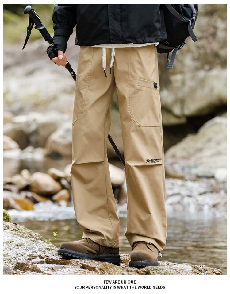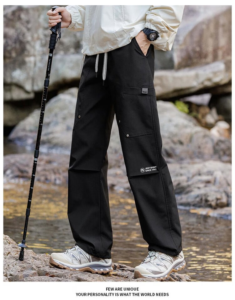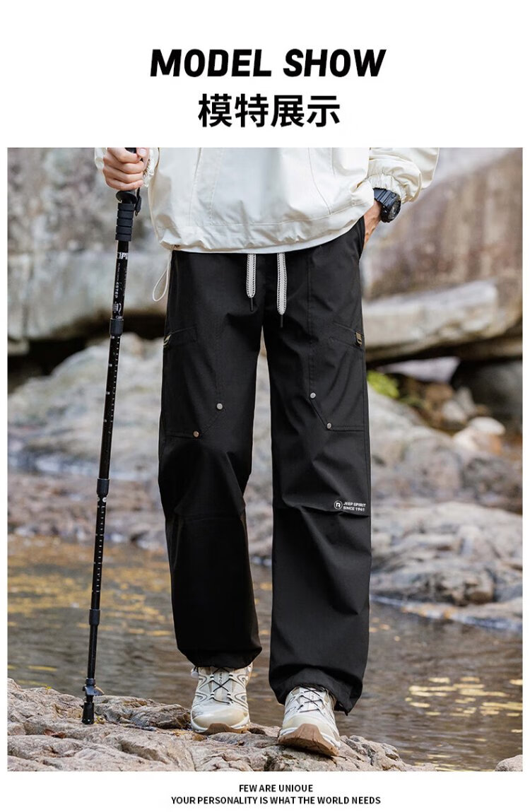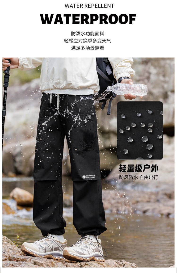 JEEP SPIRIT Jacket Pants Men's Spring and Autumn Outdoor Waterproof Overalls Men's Fashion Loose Casual Sports Pants Men's Black 2XL