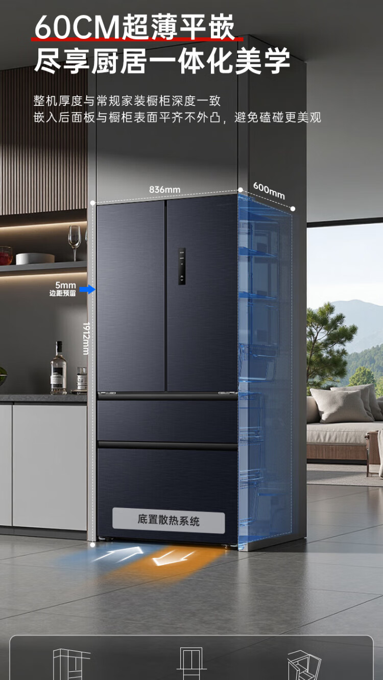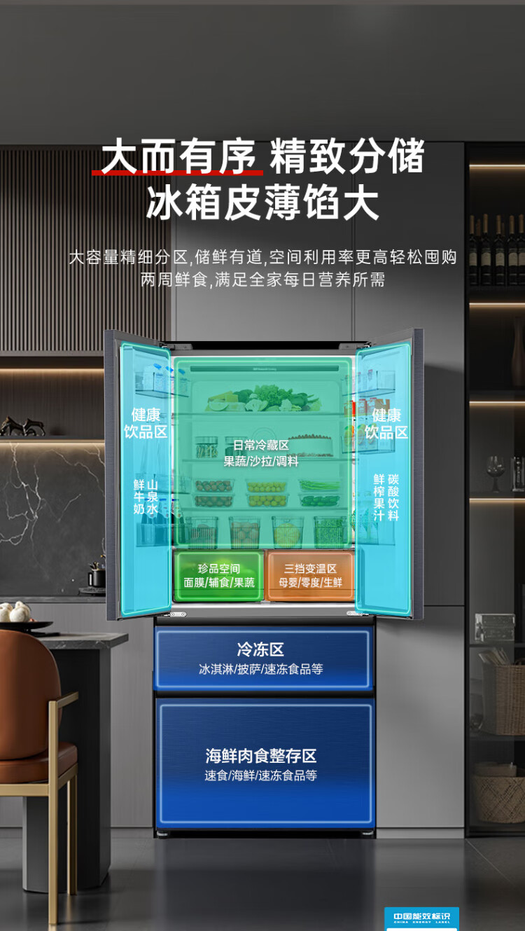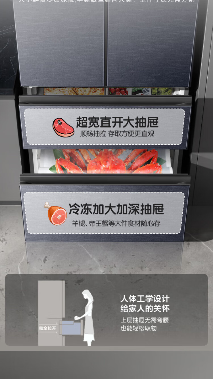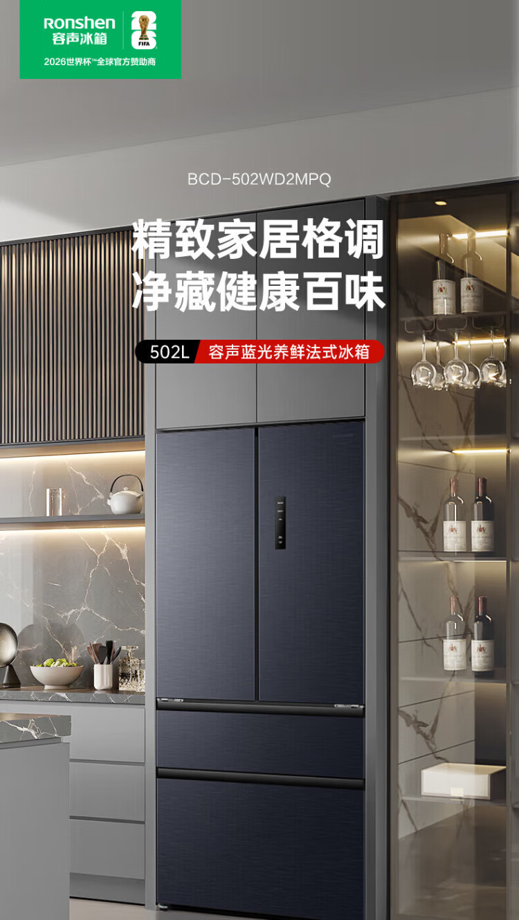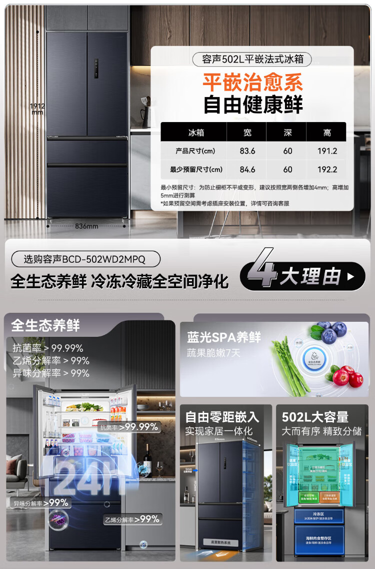 Rongsheng 502-liter French multi-door four-door ultra-thin zero-embedded refrigerator household first-class energy efficiency air-cooled frost-free energy-saving large capacity national subsidy BCD-502WD2MPQ