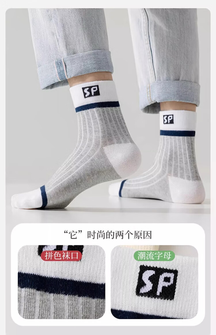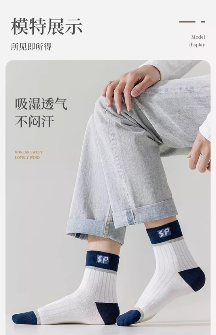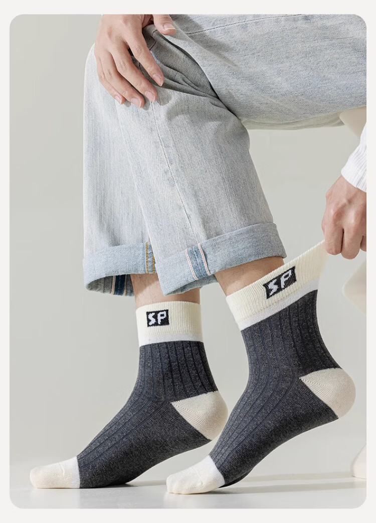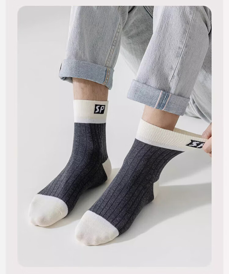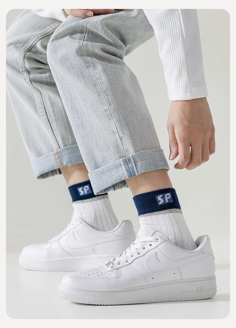 Yi cotton socks men's mid-calf socks autumn and winter sweat-absorbent and breathable men's socks long socks sports style trendy casual 8 pairs