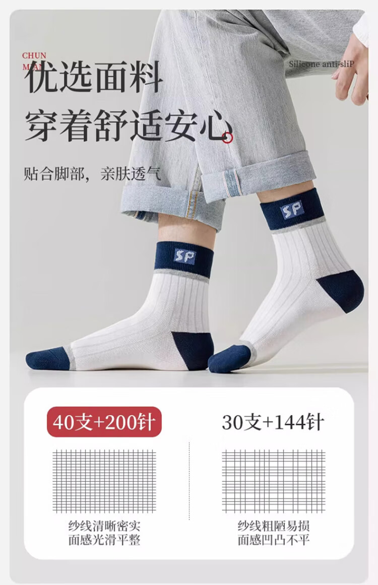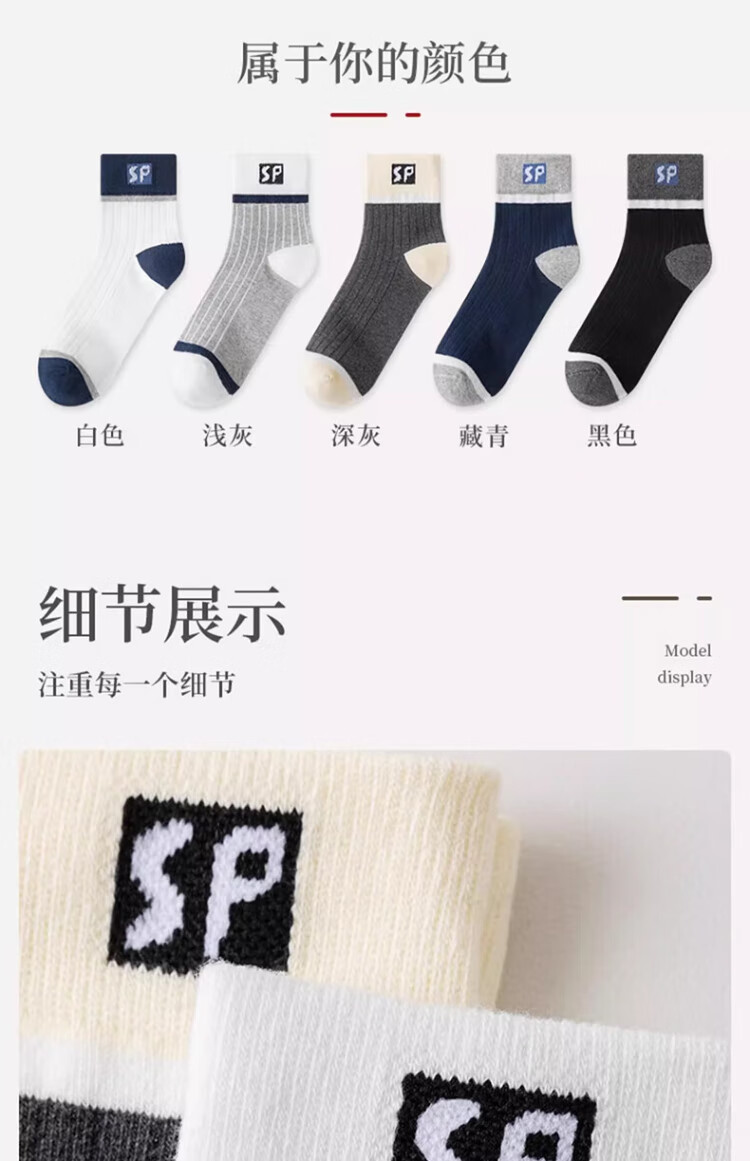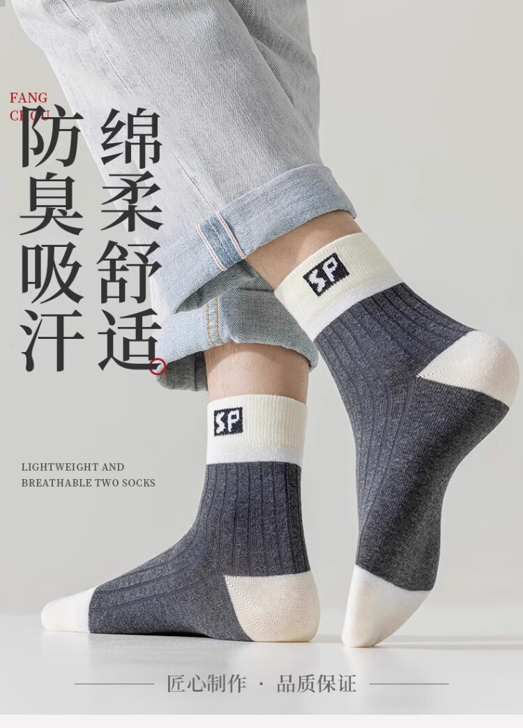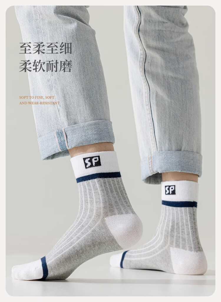Yi cotton socks men's mid-calf socks autumn and winter sweat-absorbent and breathable men's socks long socks sports style trendy casual 8 pairs