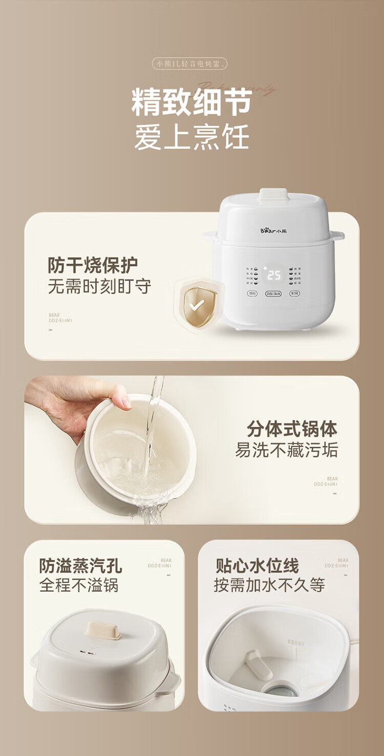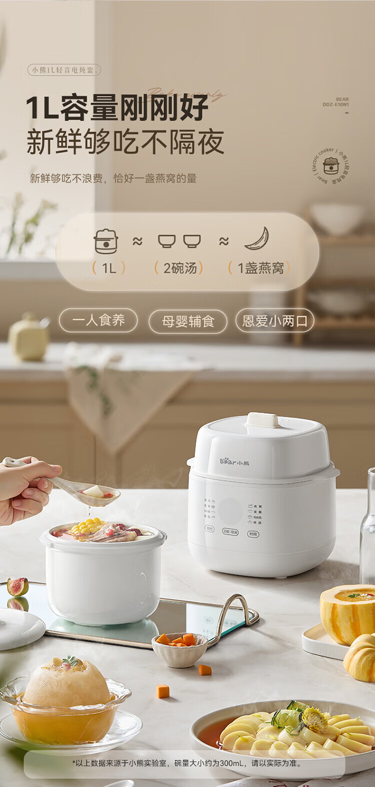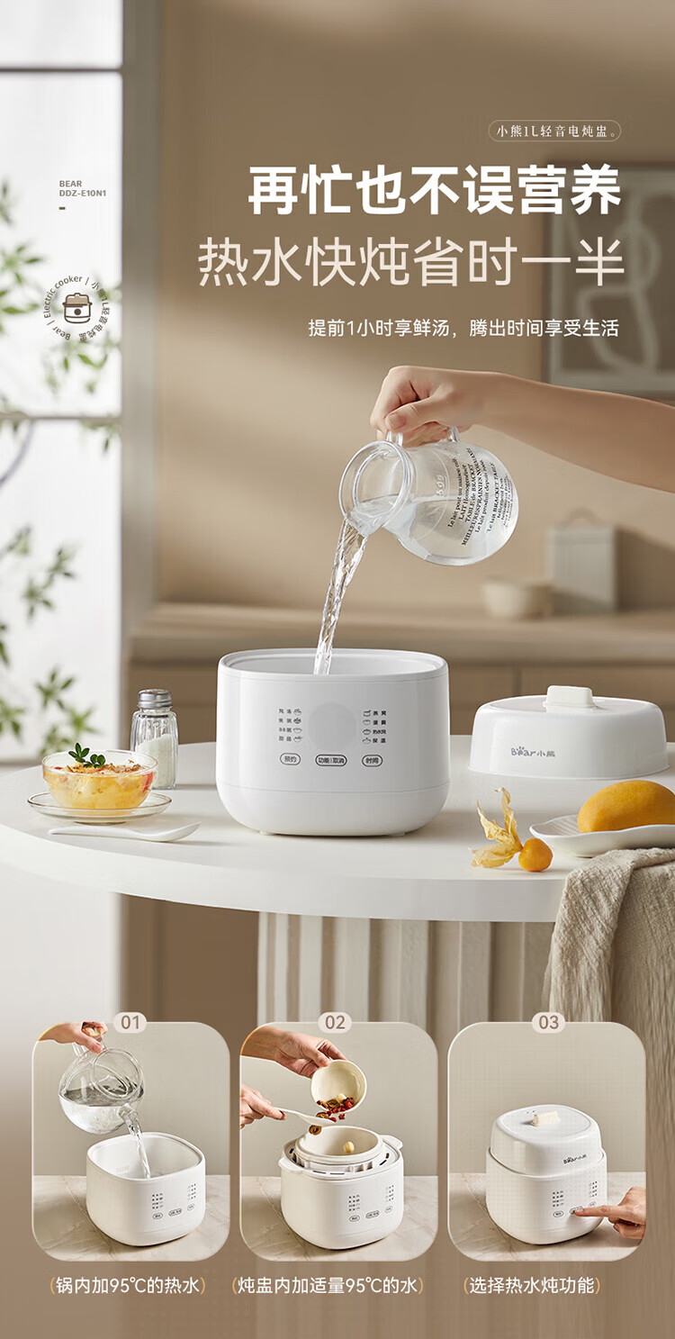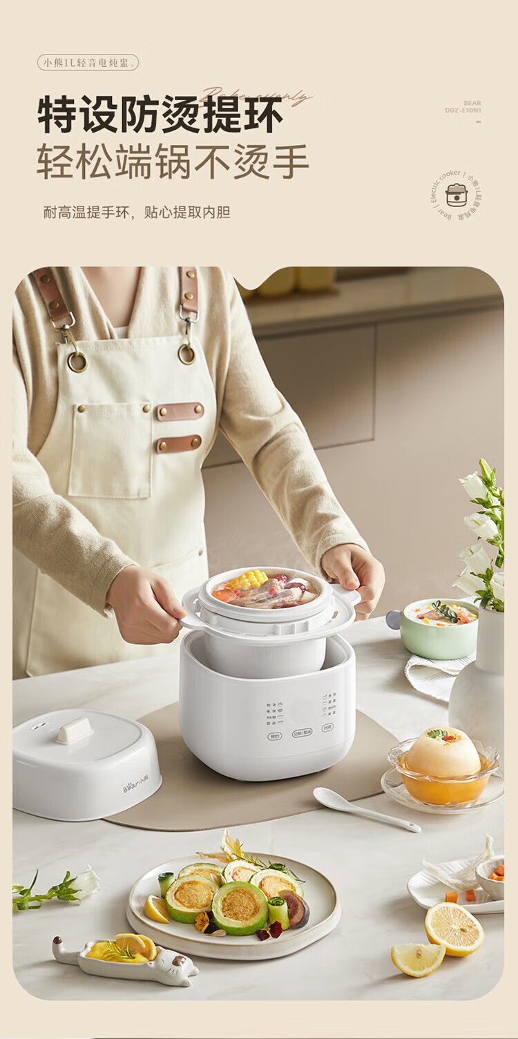Bear electric stew pot, electric stew pot, soup pot, electric stew pot, baby food pot, porridge pot, bird's nest stew pot, water-proof stew pot, 1-2 people soup pot, 1L soup pot DDZ-E10N1