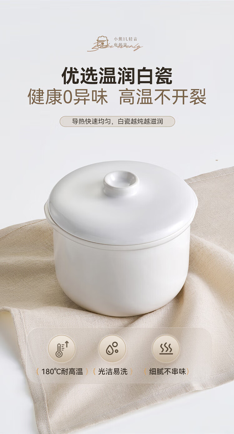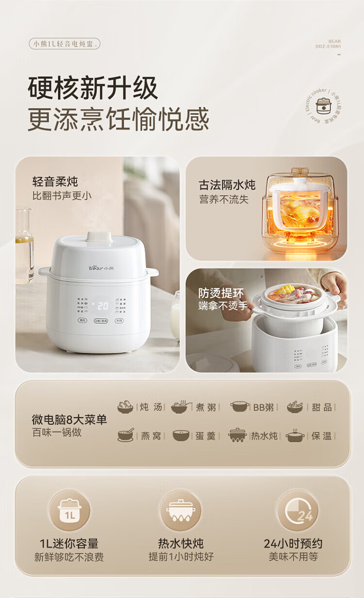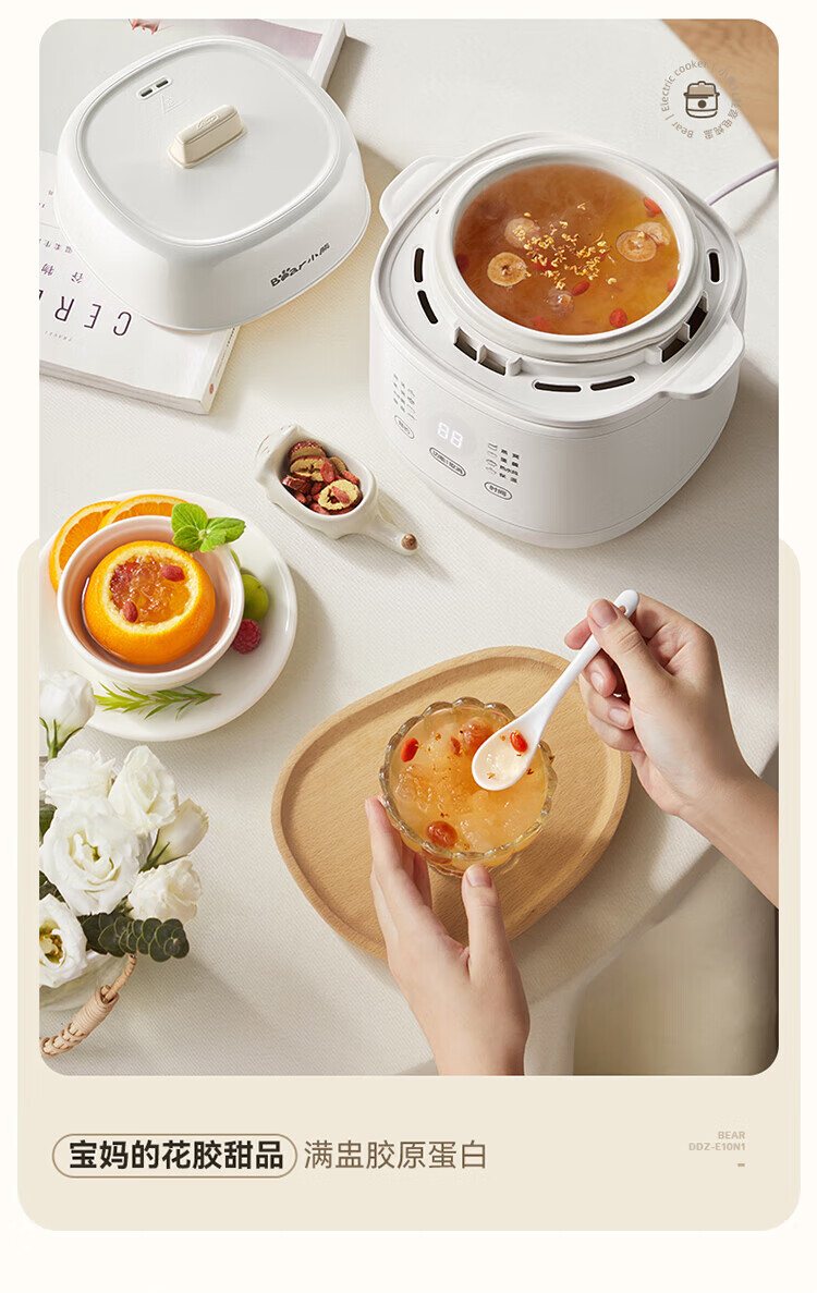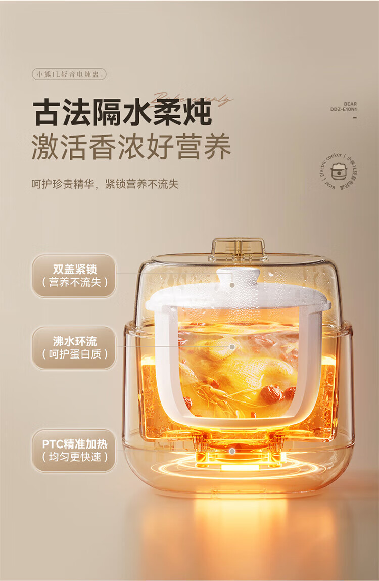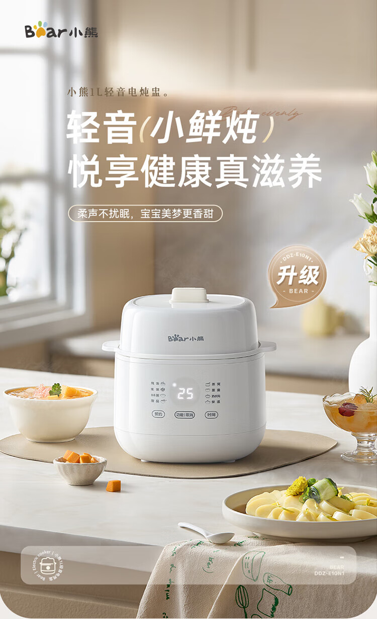 Bear electric stew pot, electric stew pot, soup pot, electric stew pot, baby food pot, porridge pot, bird's nest stew pot, water-proof stew pot, 1-2 people soup pot, 1L soup pot DDZ-E10N1