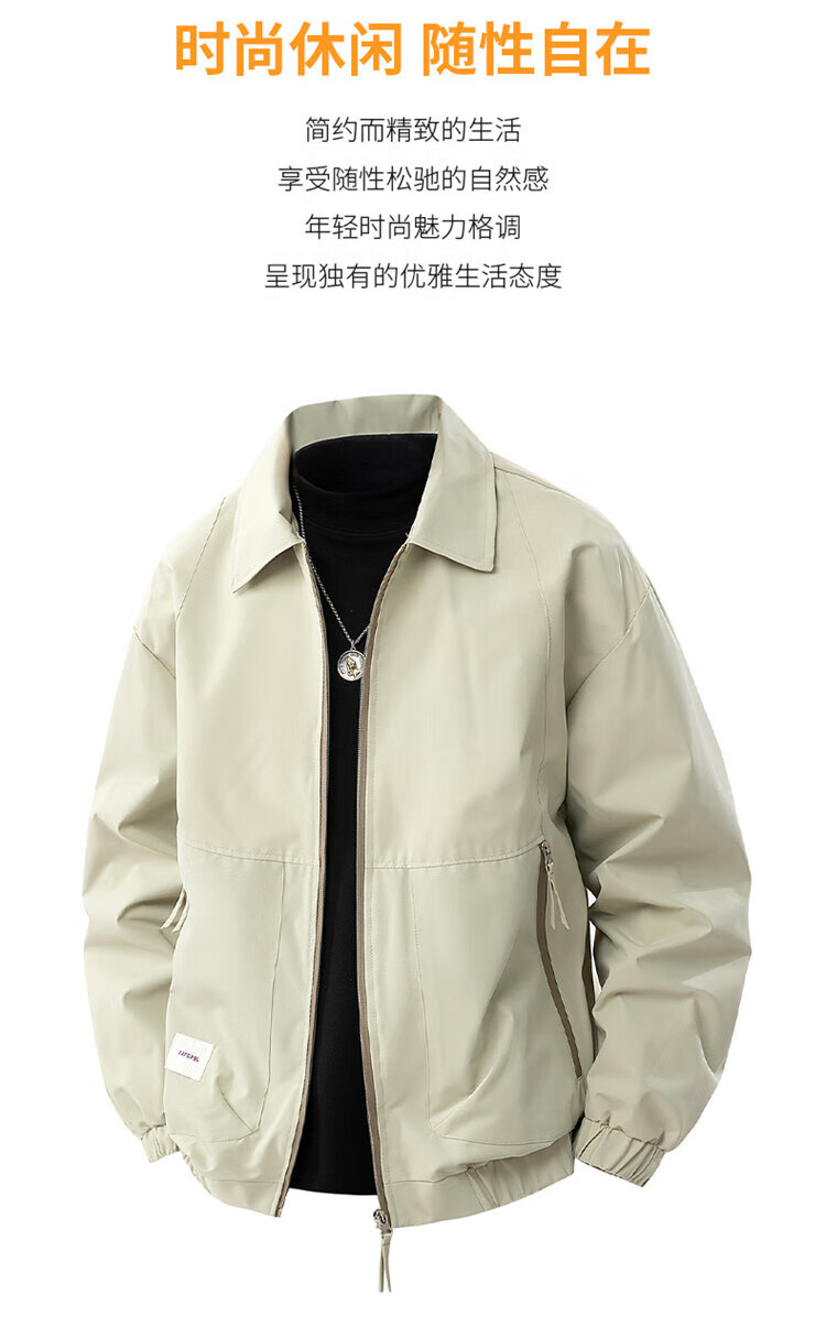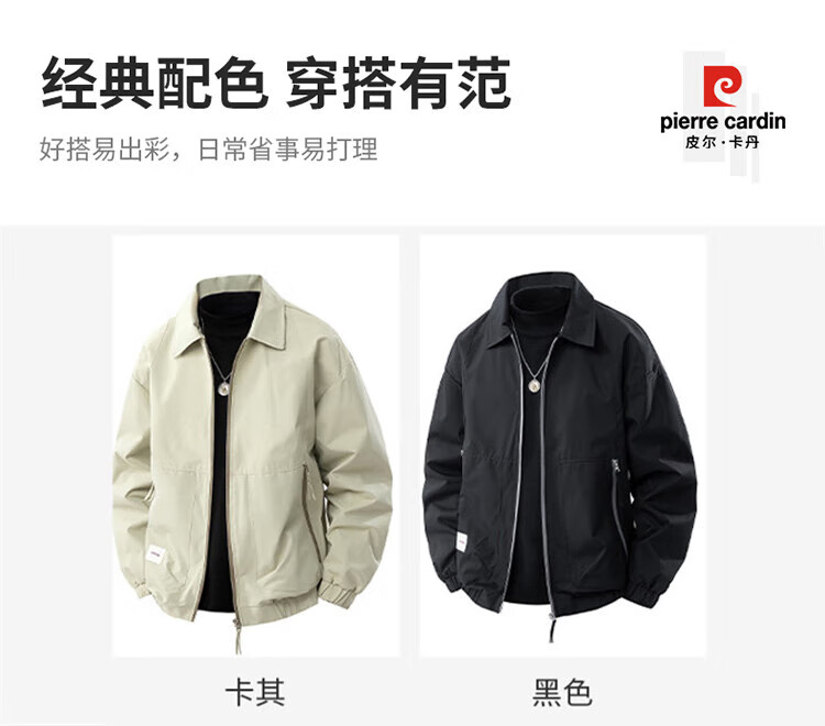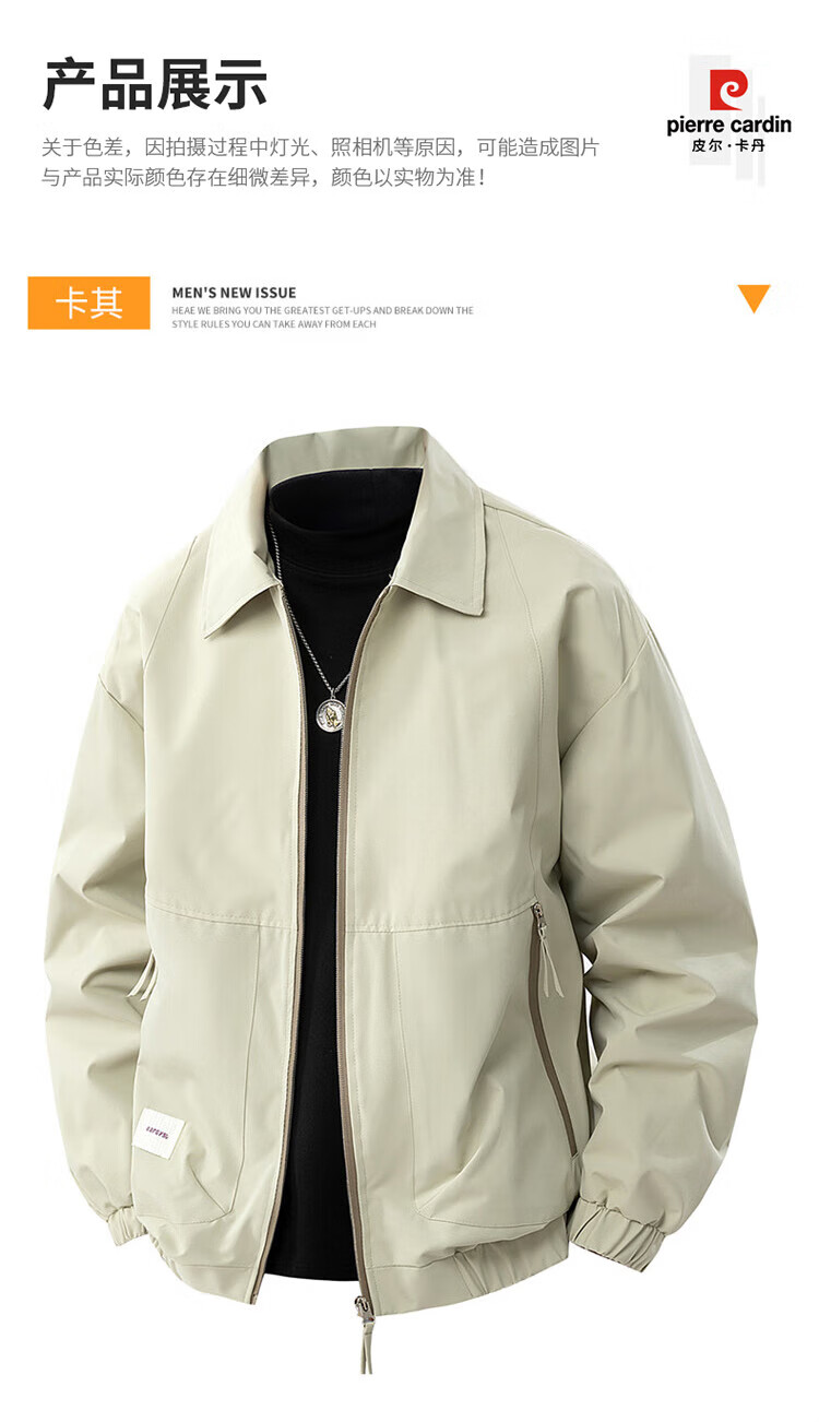Pierre Cardin jacket men's spring and autumn trendy brand premium lapel jacket men's casual retro top men's Khaki XL