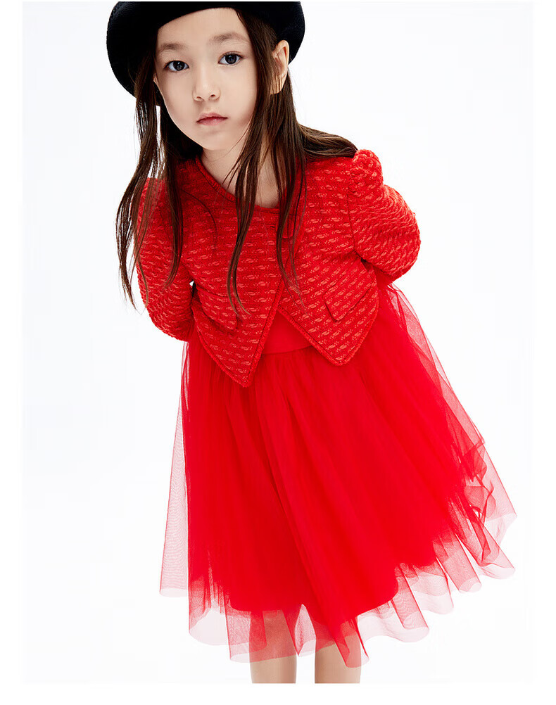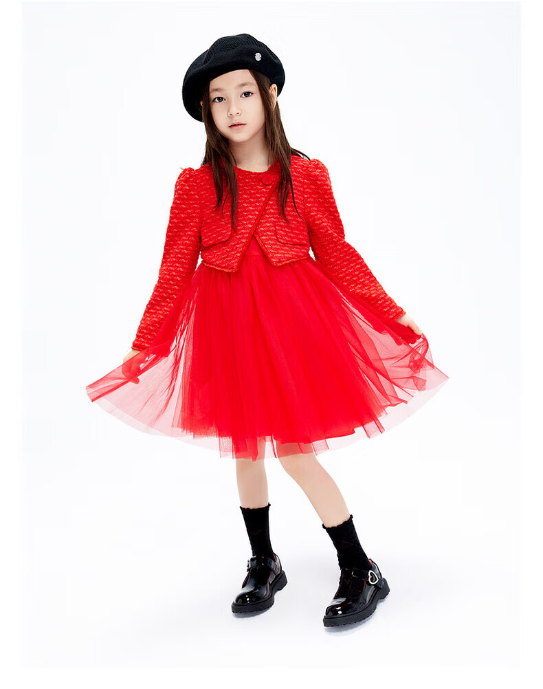 Little MO&Co. New Year's greetings clothing, children's clothing, girls' New Year's skirts, mesh dresses, Western-style dresses for children