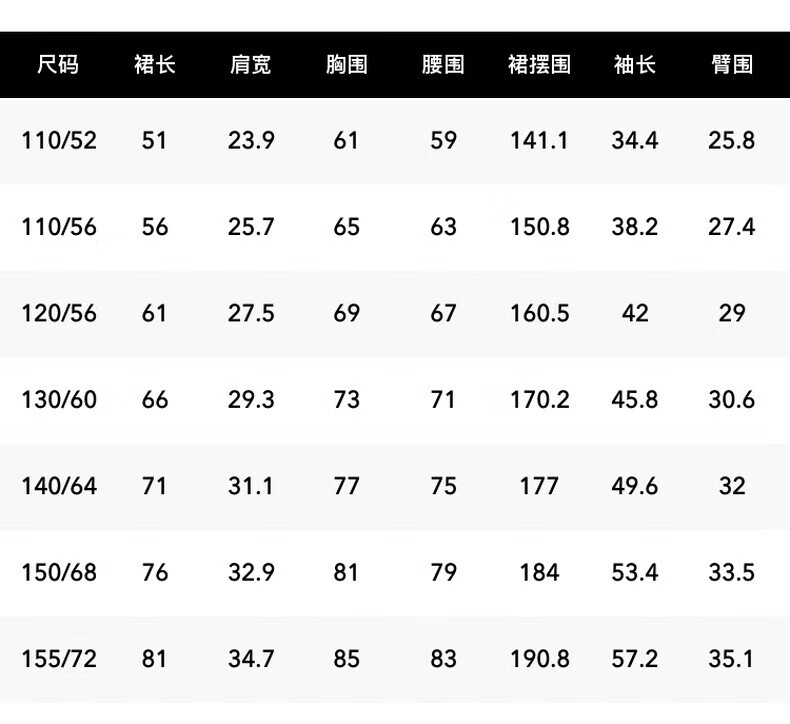 China (cm) 160-165/84-86 165-170 / 88-90 167-172 / 92-96 168-173 / 98-102 170-176 / 106-110