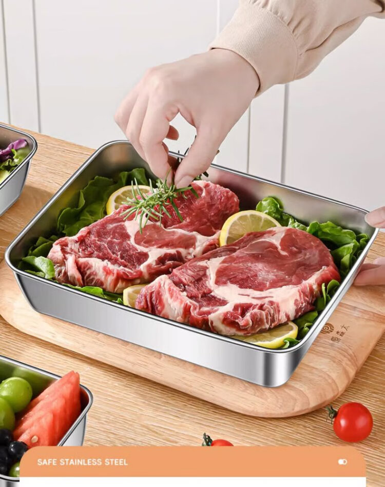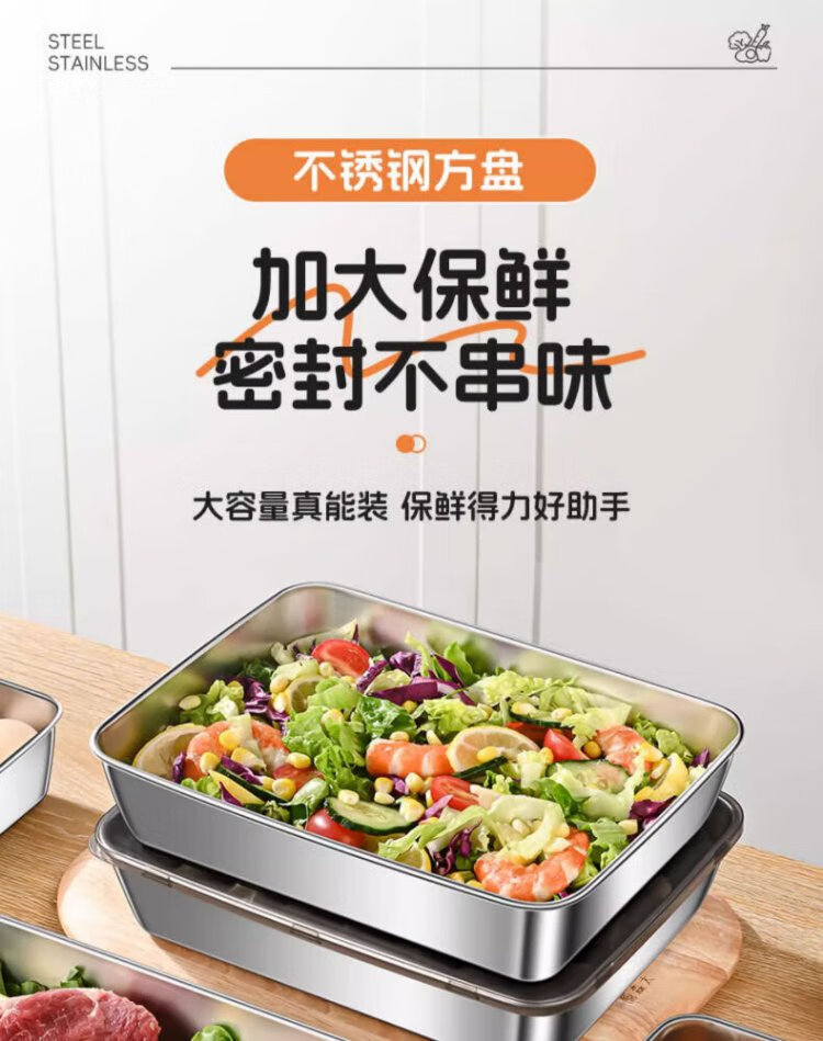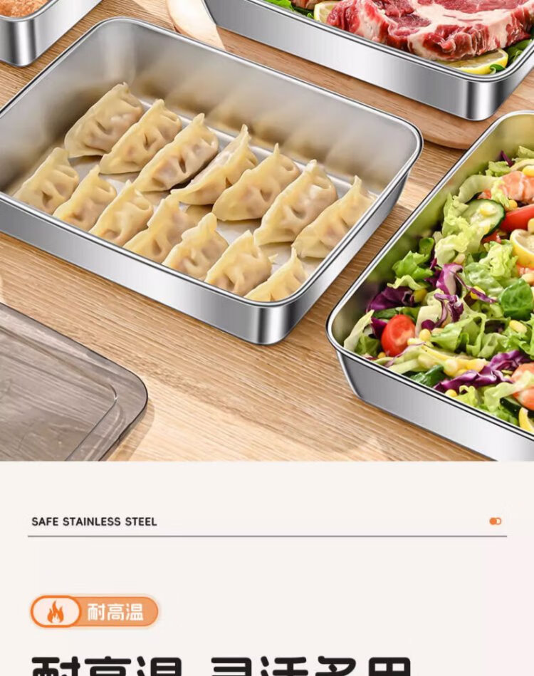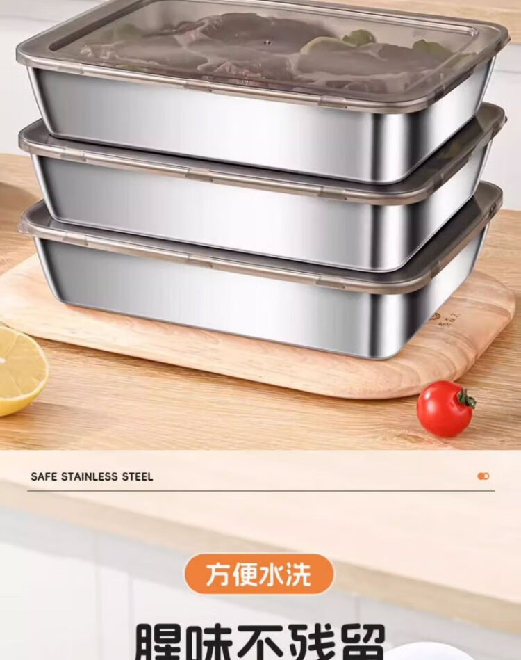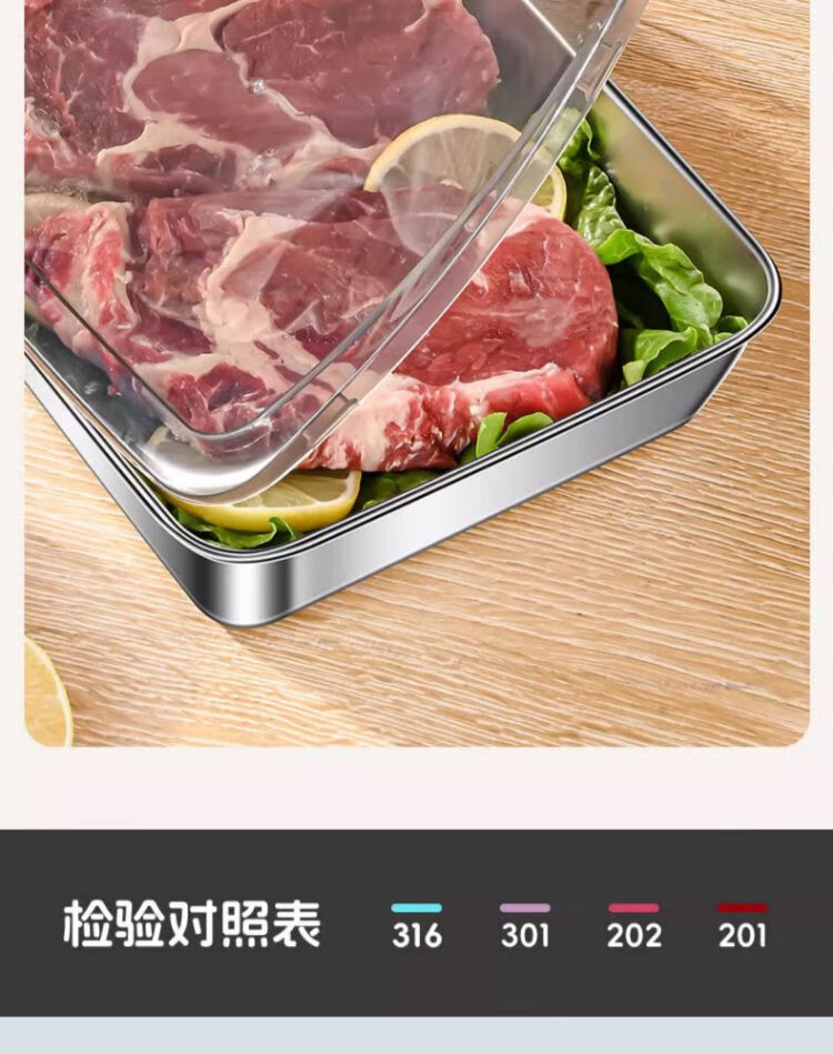 Youmiyoupin stainless steel crisper food grade covered square plate refrigerator storage box plate picnic box dumpling square box rectangular
