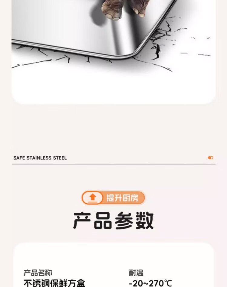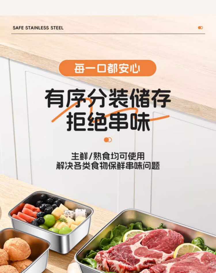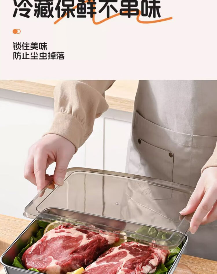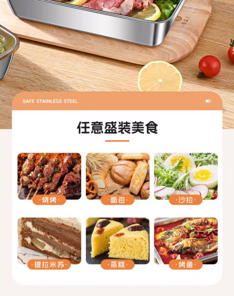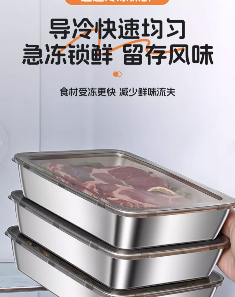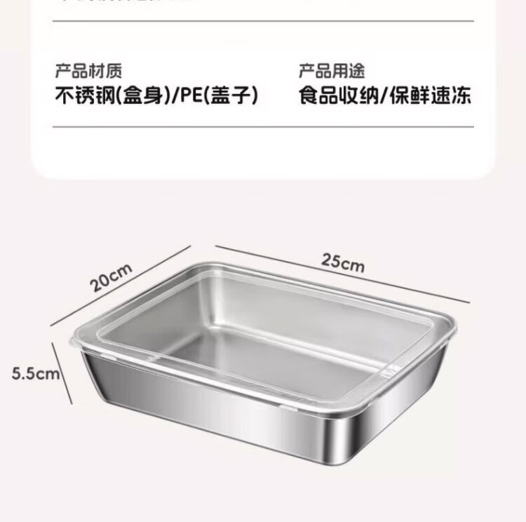 Youmiyoupin stainless steel crisper food grade covered square plate refrigerator storage box plate picnic box dumpling square box rectangular