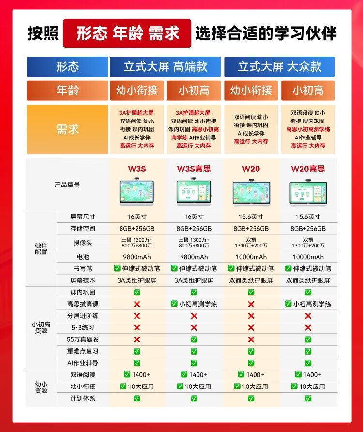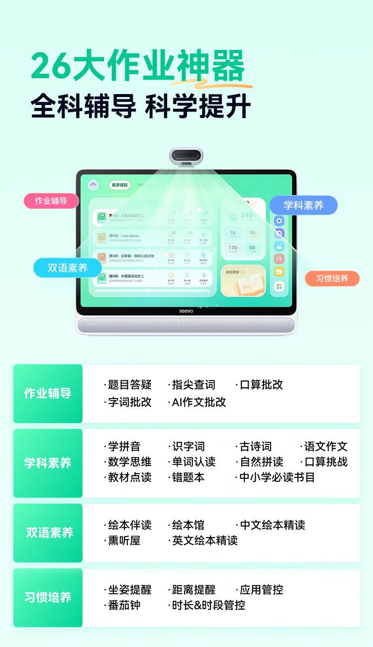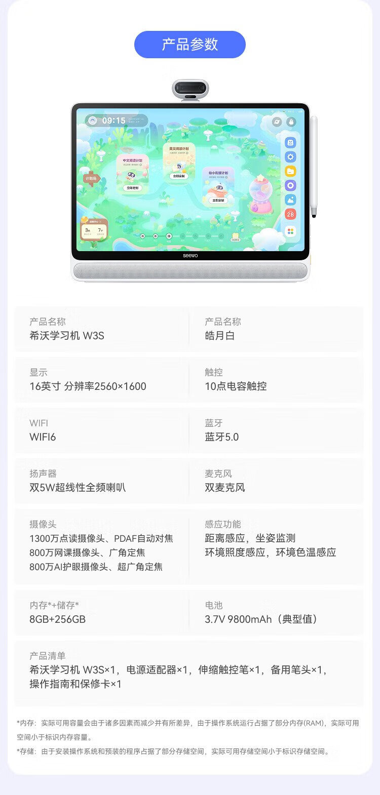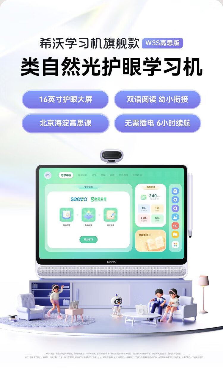 Seewo AI learning machine W3S Gaosi version, national subsidy 15% 16-inch eye protection learning tablet, elementary school, junior high school and high school training machine, Gaosi comprehensive training 8+256G