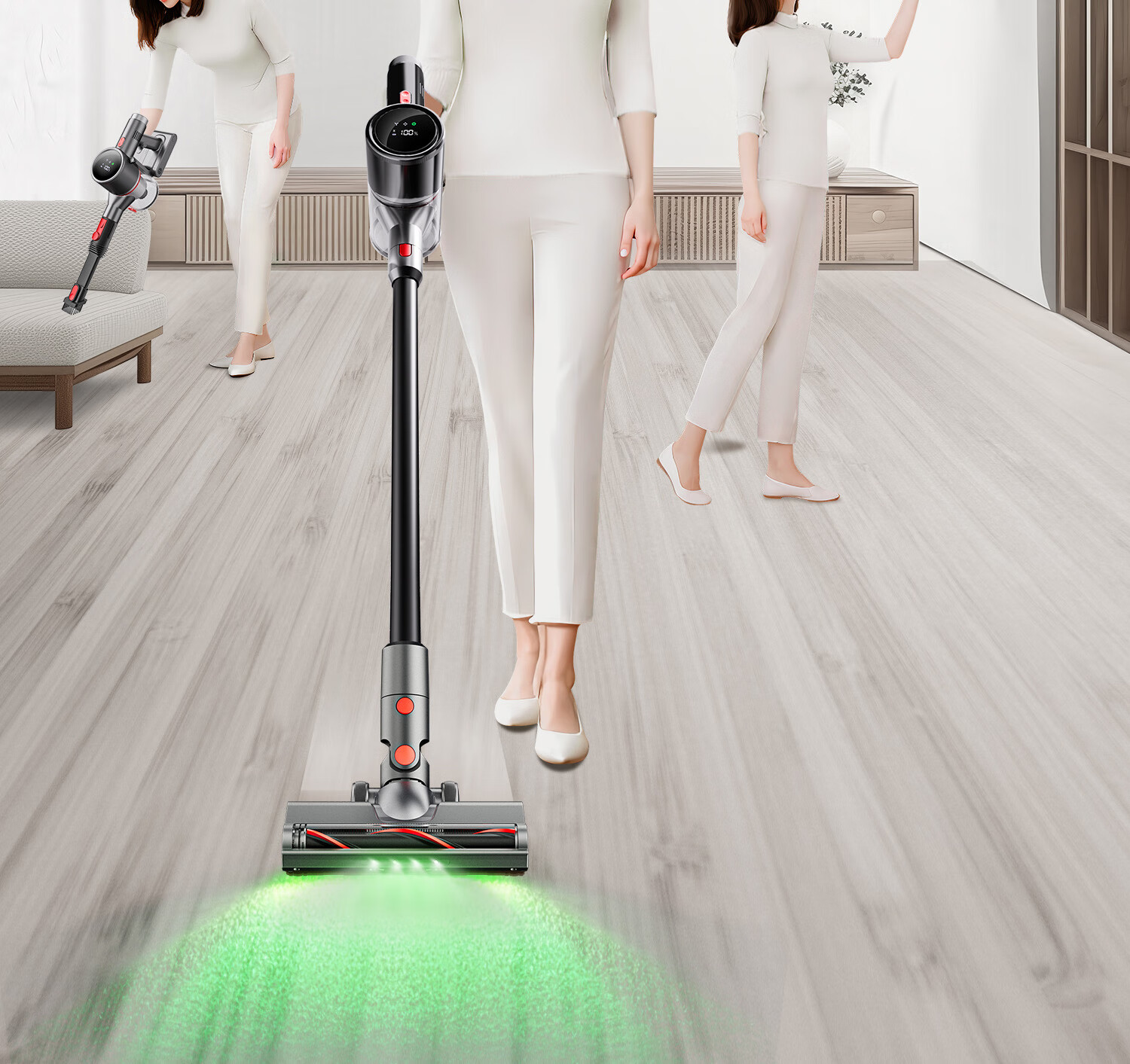Puppy vacuum cleaner household large suction suction and mopping all-in-one wireless handheld green light dust display dry moisture mop vacuum mopping machine pet cat hair dog hair carpet cleaning S006