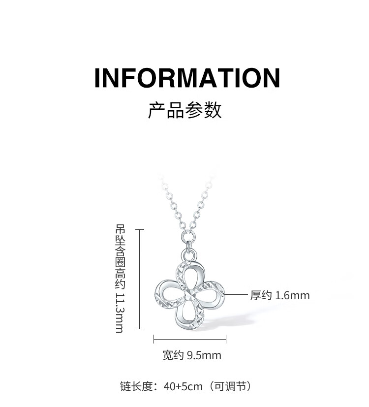 Saturday Fu PT950 platinum necklace for women platinum pendant four-leaf clover birthday gift B0614843 40+5cm about 2.29g