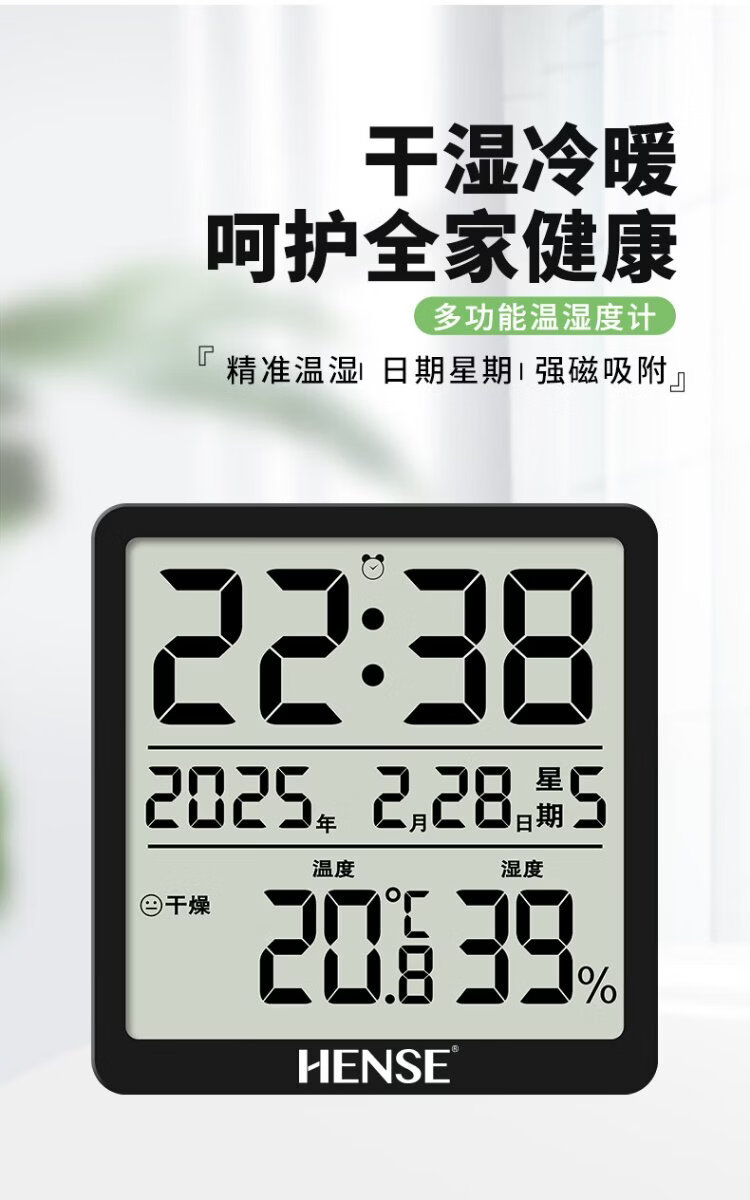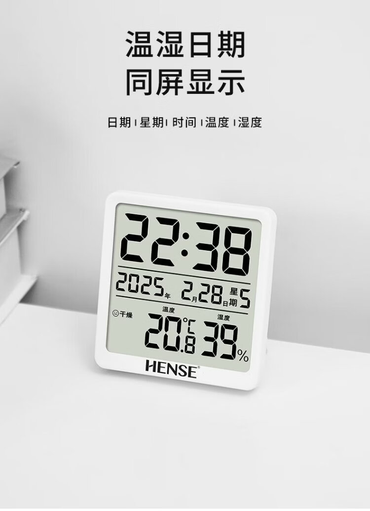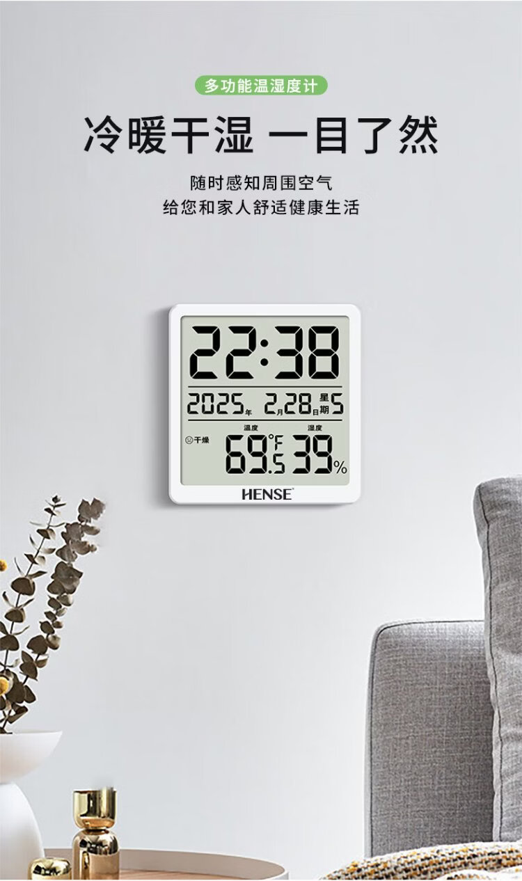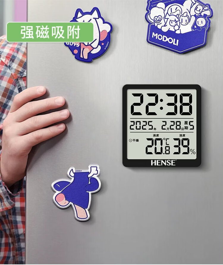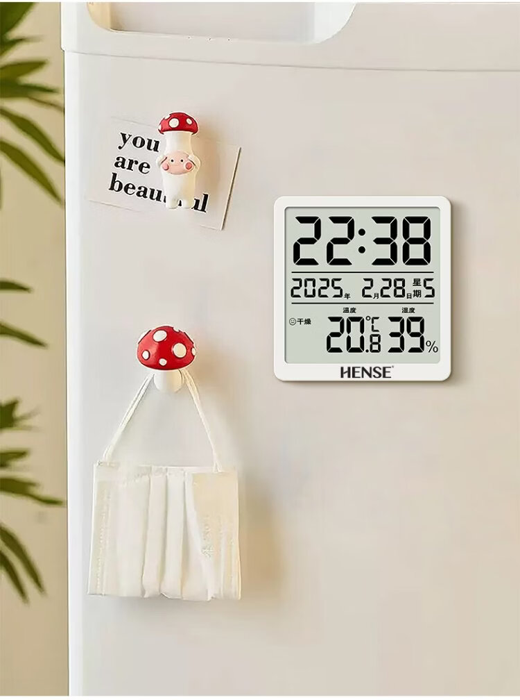 Hense kitchen clock magnetic electronic clock refrigerator sticker thermometer and hygrometer living room desktop clock desktop digital electronic watch can be hung on the wall HA3702 white