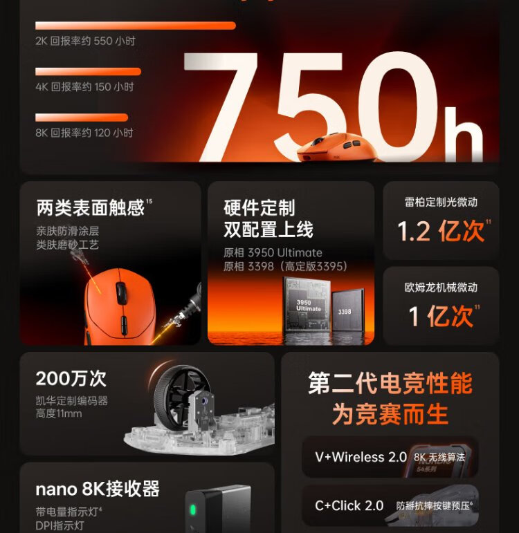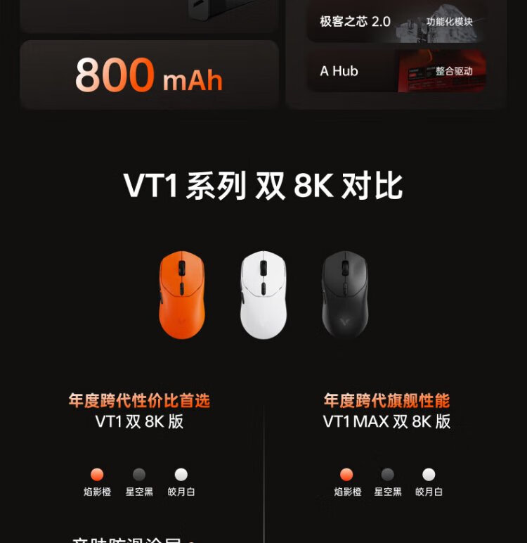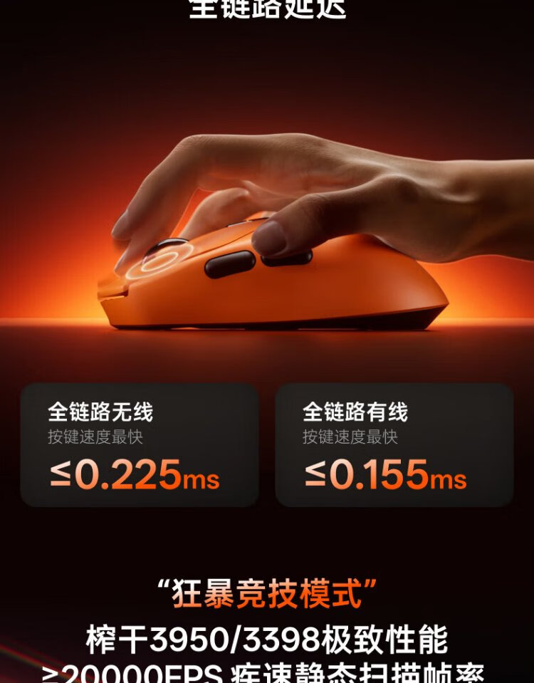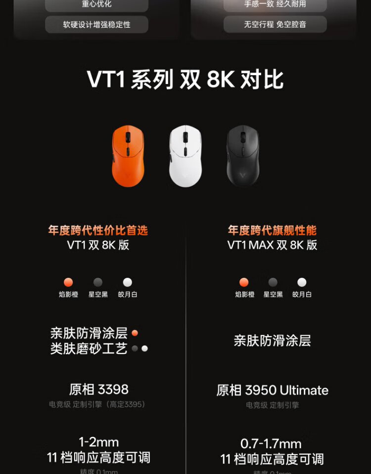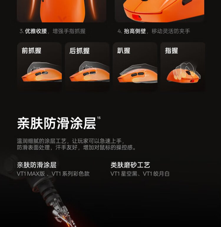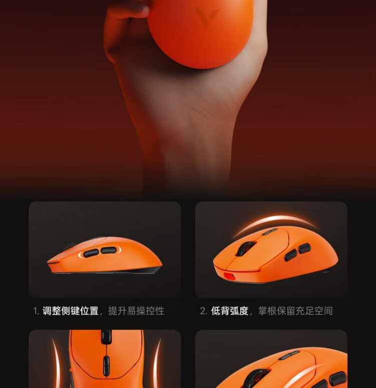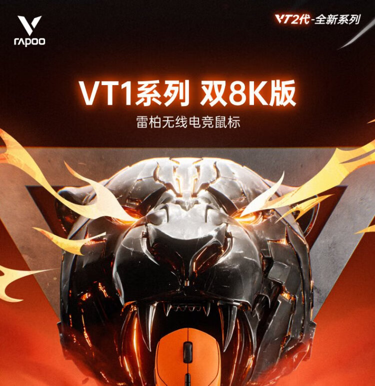 雷柏(Rapoo)VT1二代双8K版 中小手无线/有线双模游戏鼠标 轻量化设计原相3398三角洲行动fps吃鸡鼠标 焰影橙