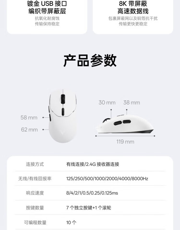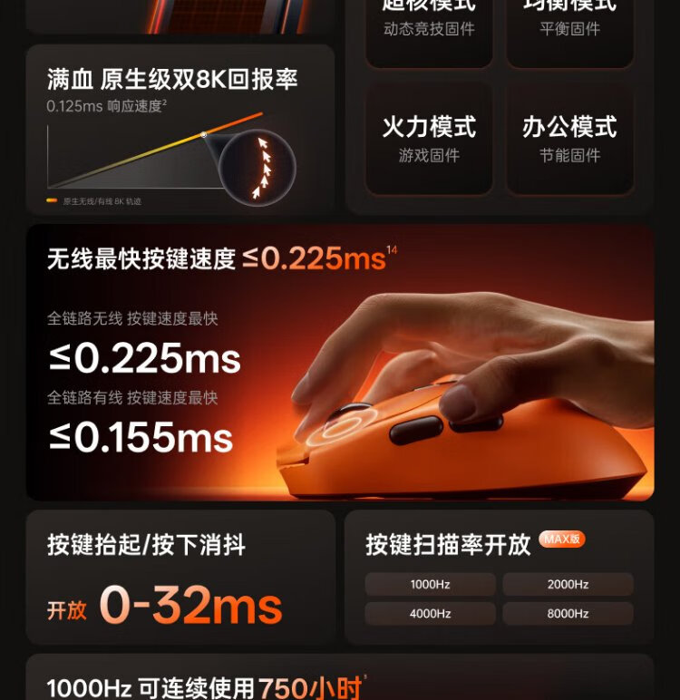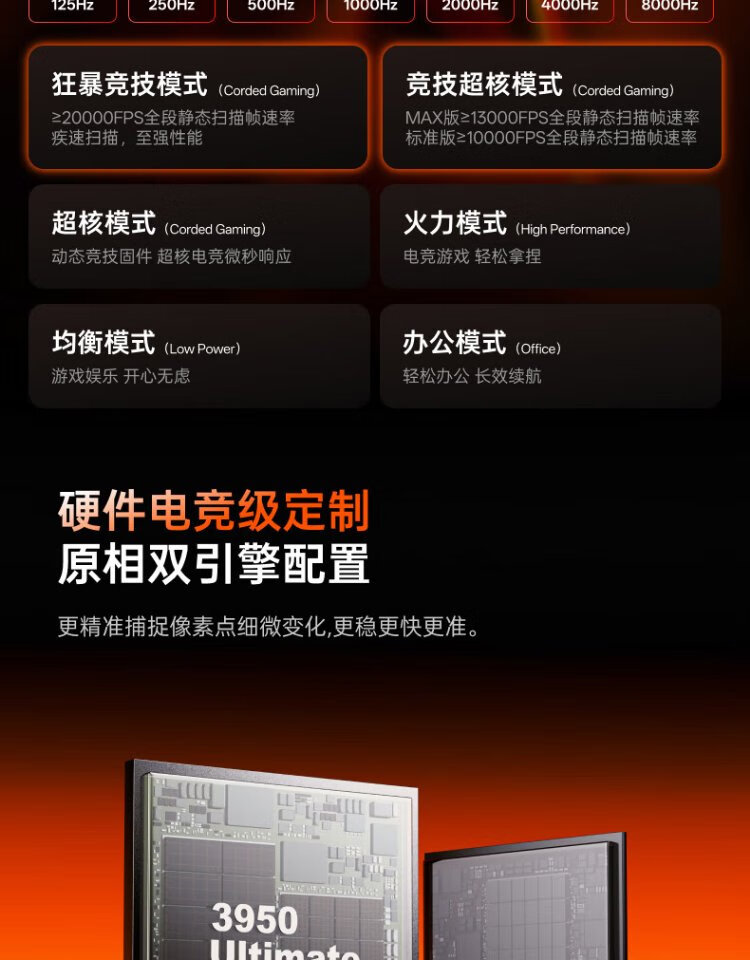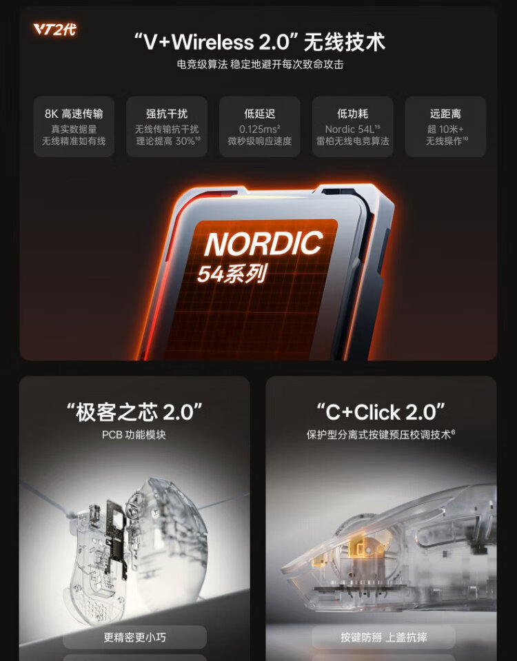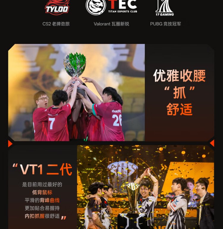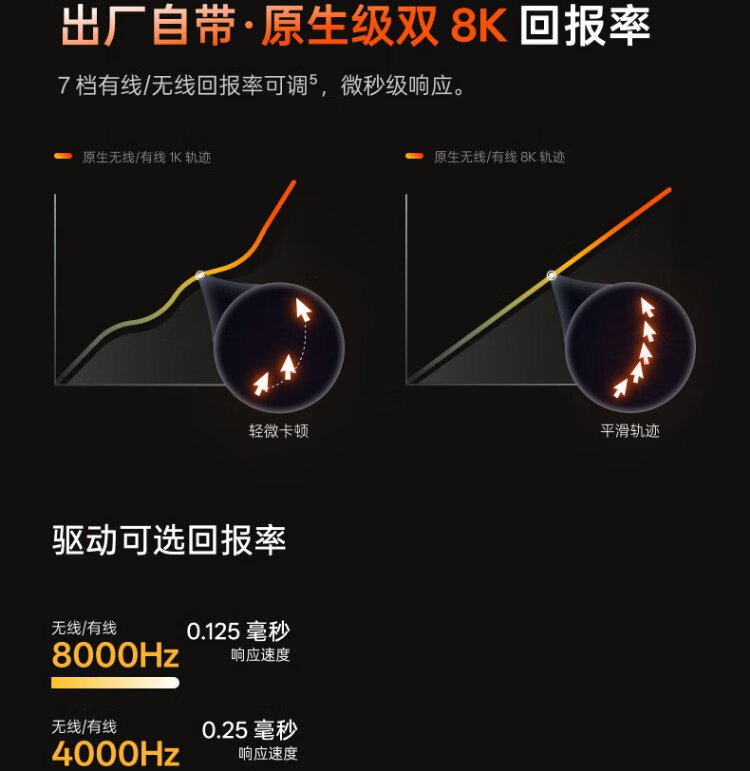 雷柏(Rapoo)VT1二代双8K版 中小手无线/有线双模游戏鼠标 轻量化设计原相3398三角洲行动fps吃鸡鼠标 焰影橙