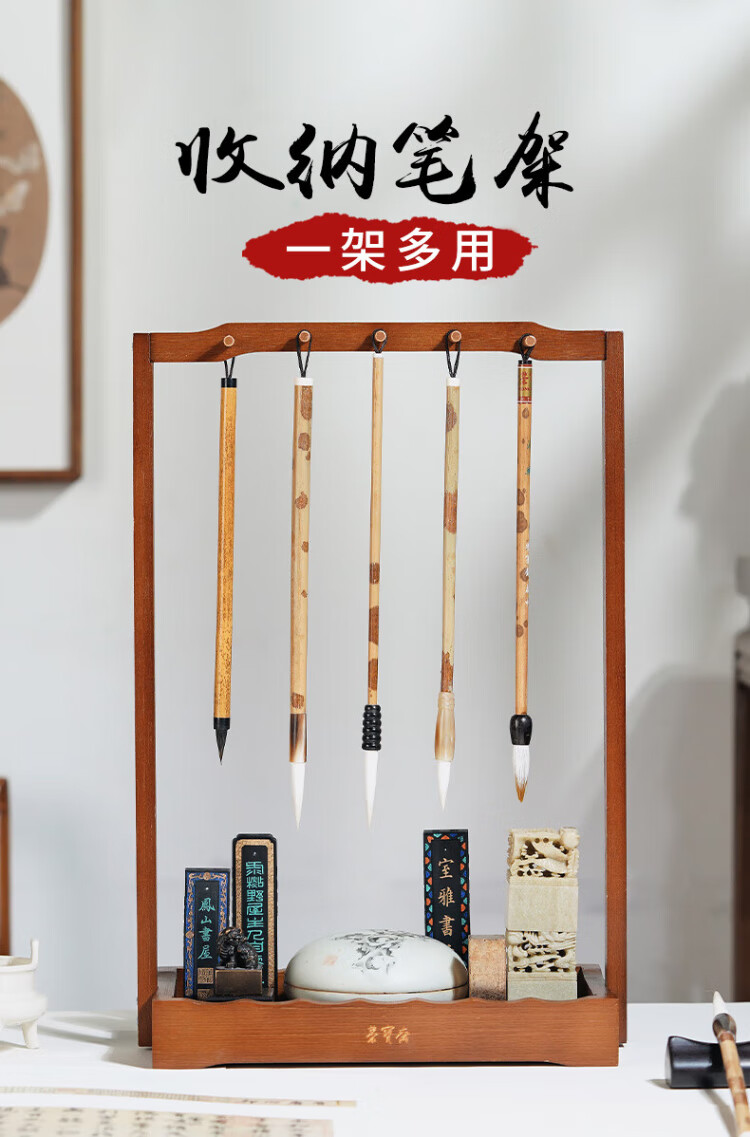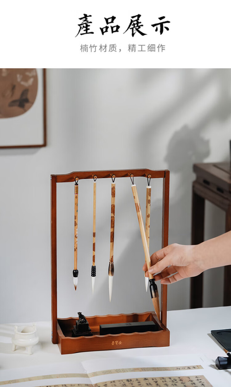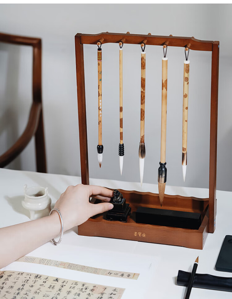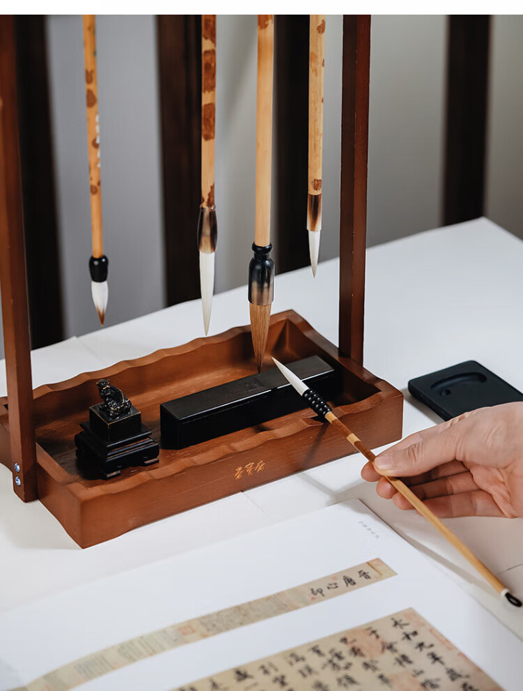 Rongbaozhai Brush Hanging Pen Holder Phoebe Solid Wood Four Treasures for Study Accessories Pen Holder Pen Mountain Calligraphy French Painting Beginner Practice Rice Paper Ink Pen Holder Popular Products