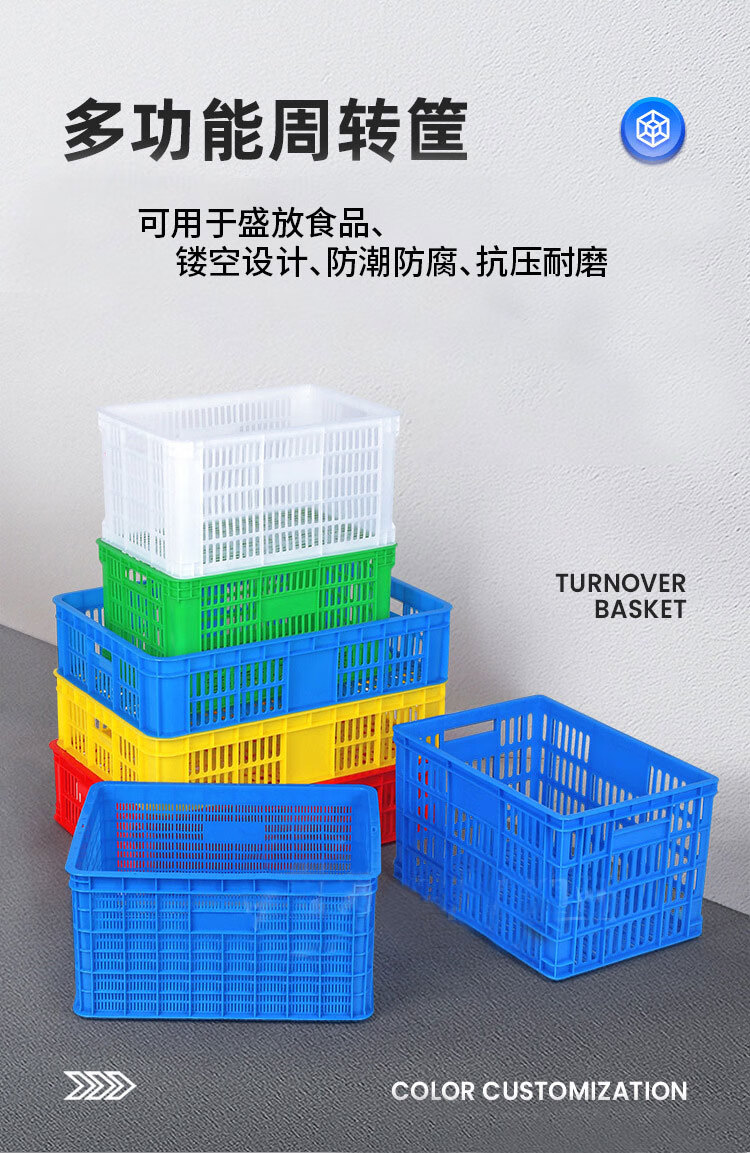 JINLI plastic turnover basket 455*305*240 thickened hollow storage basket fruit and vegetable logistics sorting industrial plastic frame livestock frame blue