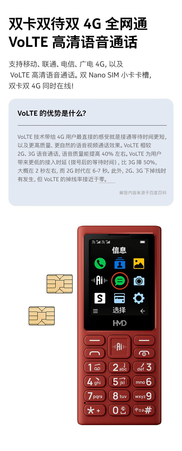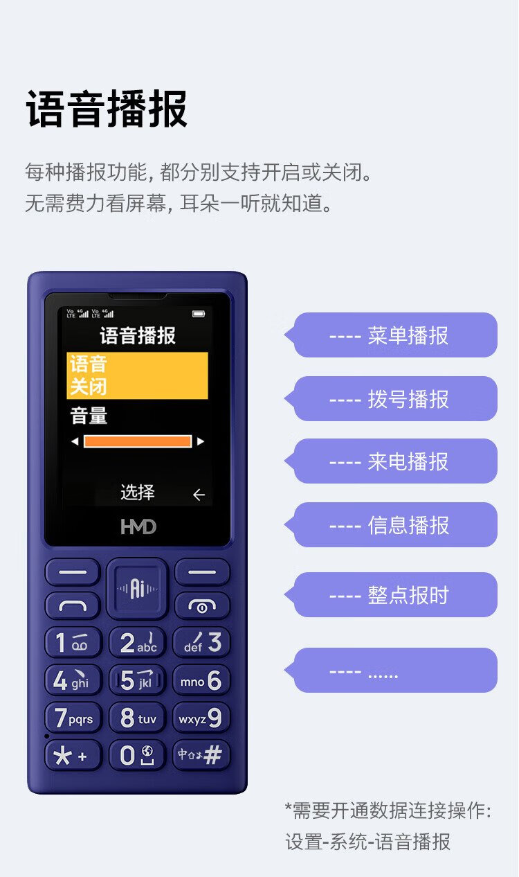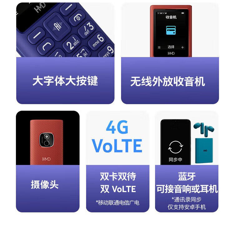 HMD102 4G Full Netcom Promise Kia Classic Dual SIM Dual Standby Straight Board Big Buttons Big Font Function Phone Standby AI Phone for Students and Elderly Purple