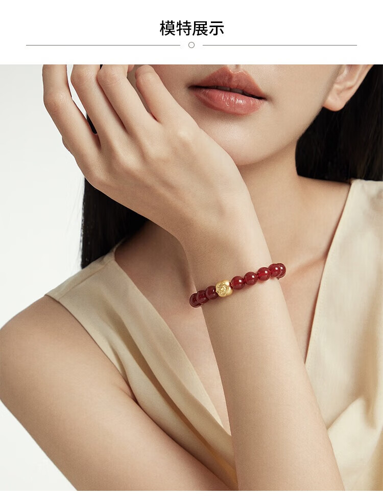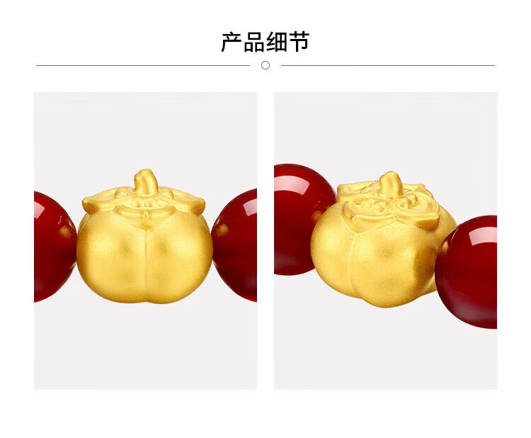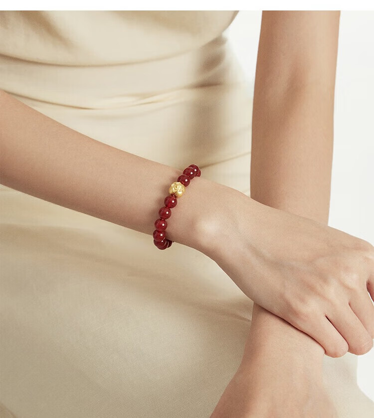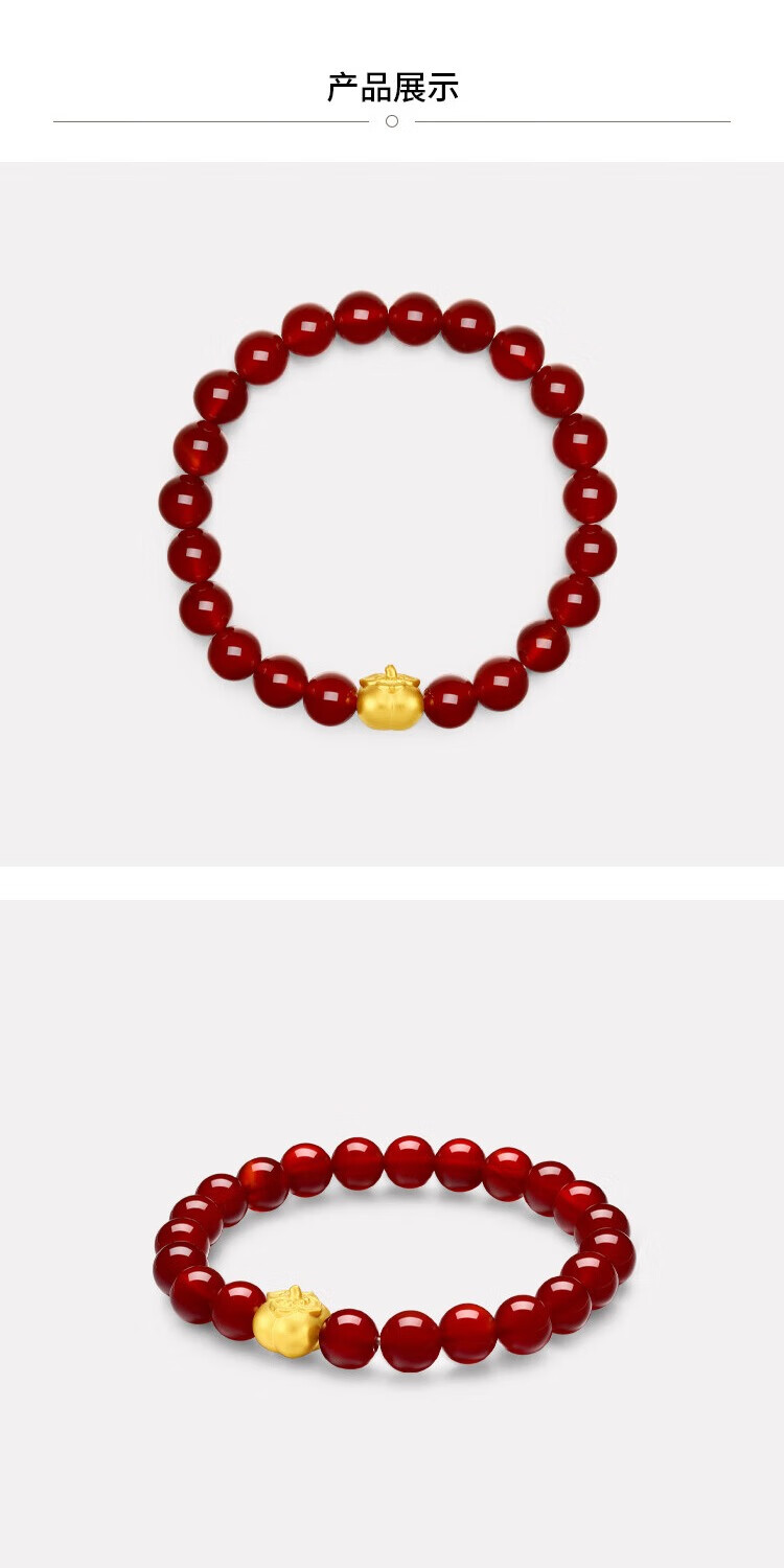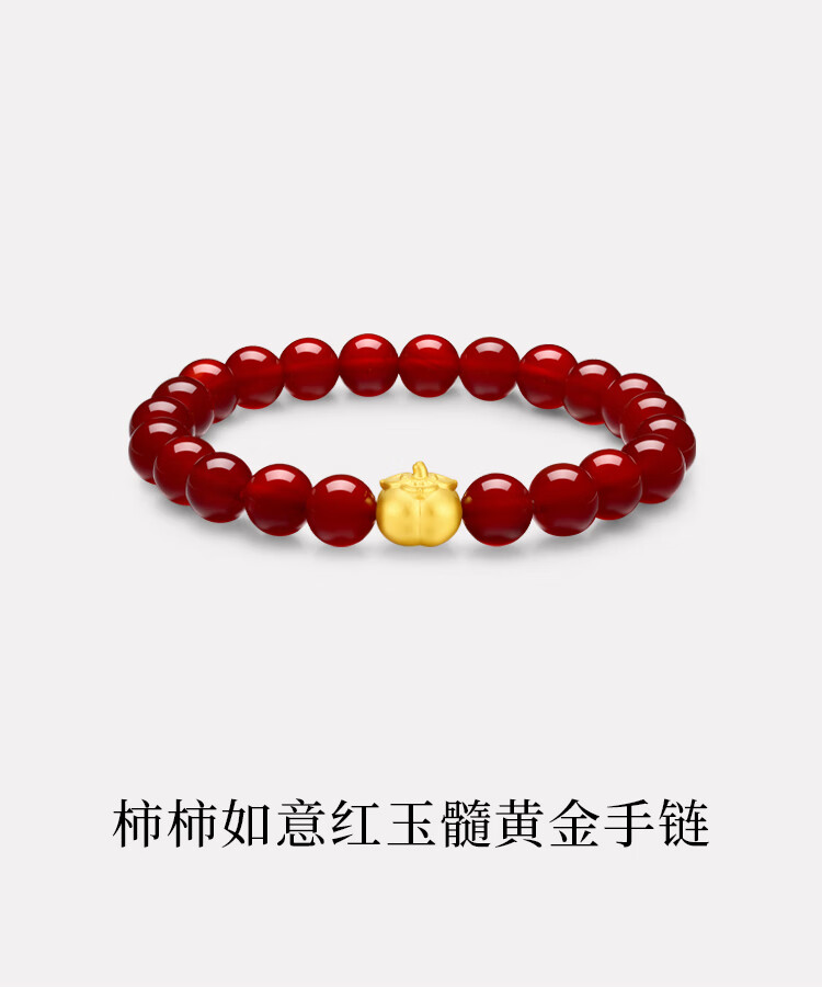 Chow Tai Fook Persimmon Persimmon Ruyi Persimmon Red Chalcedony Birthday Bracelet Gold Bracelet EOR1373 Cross-night Same Style