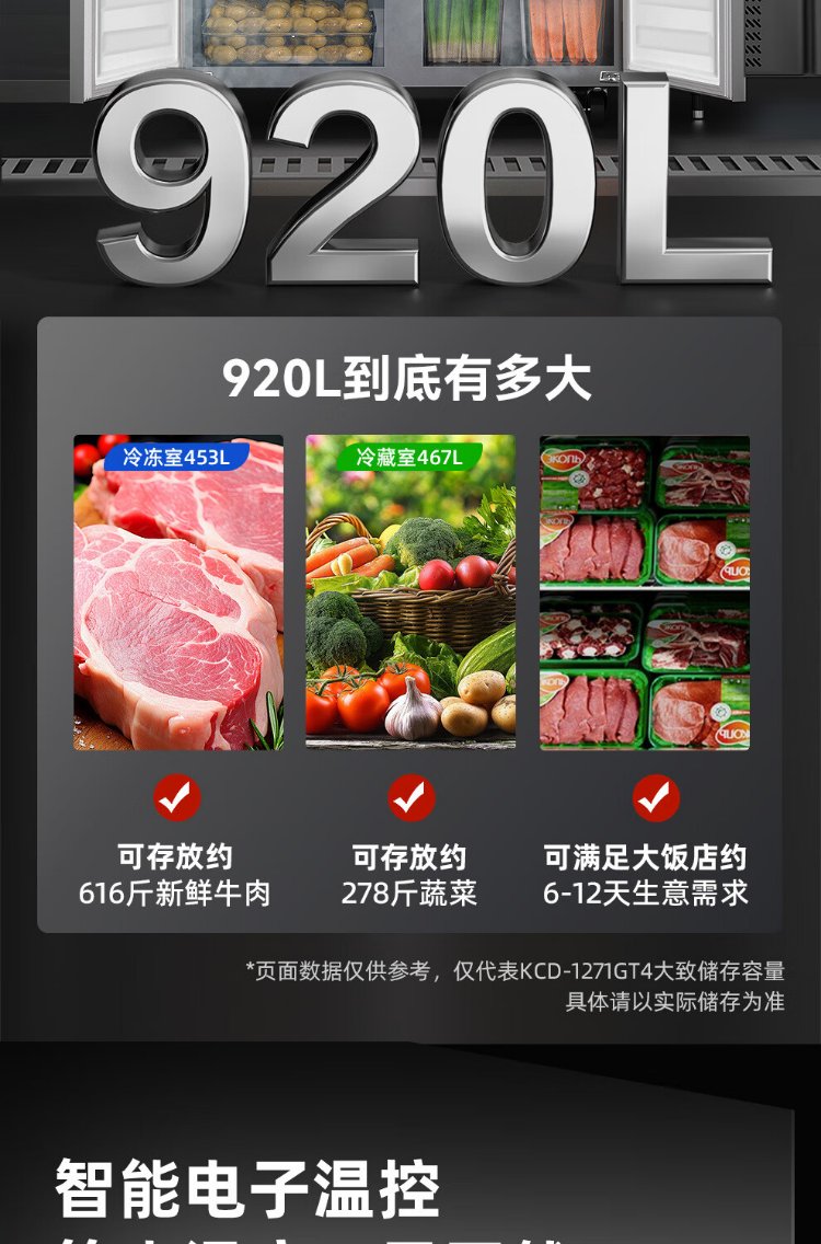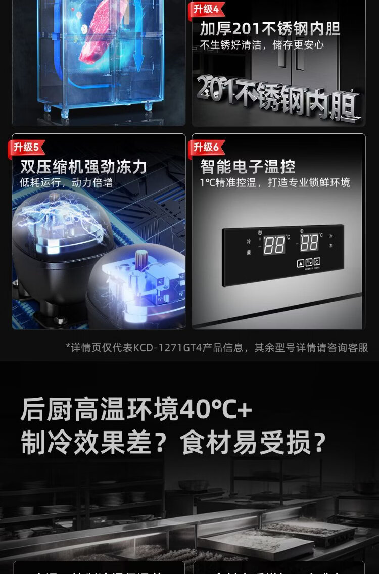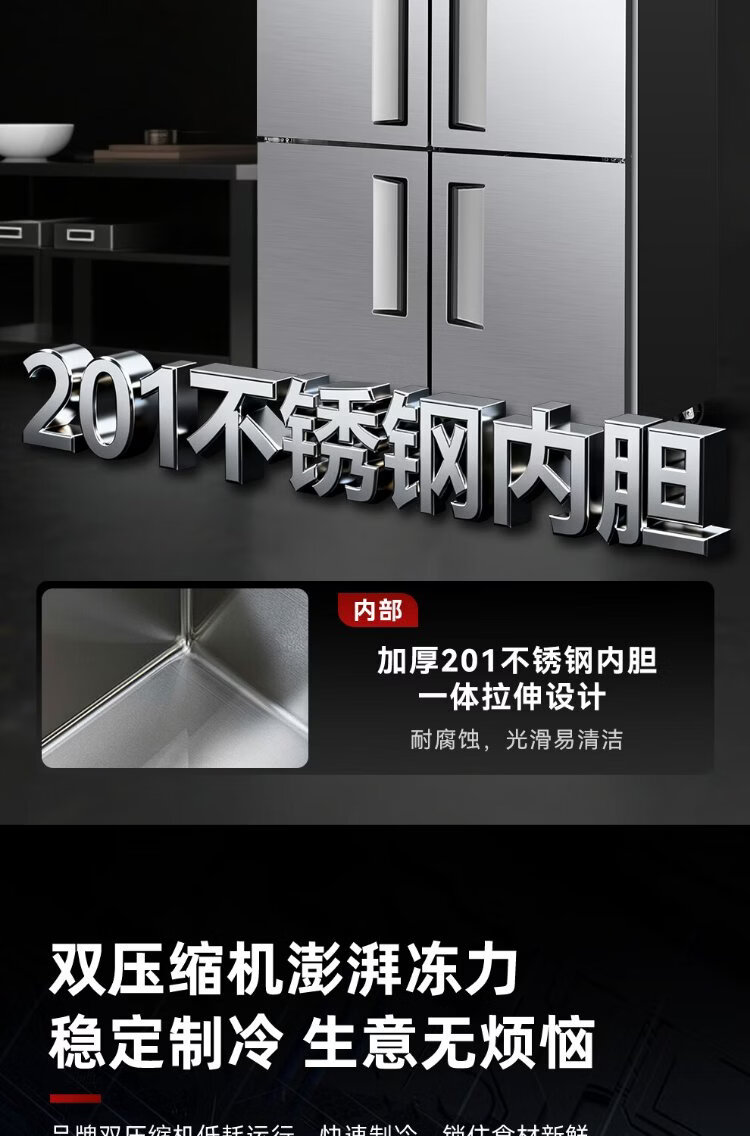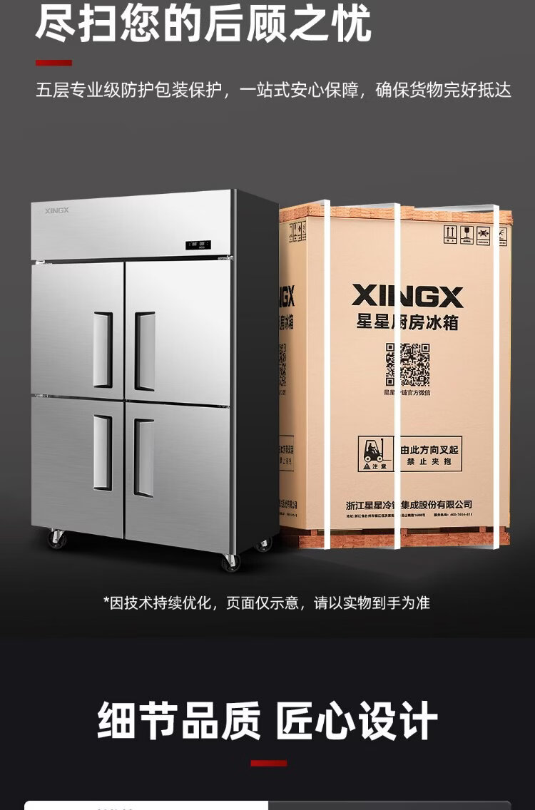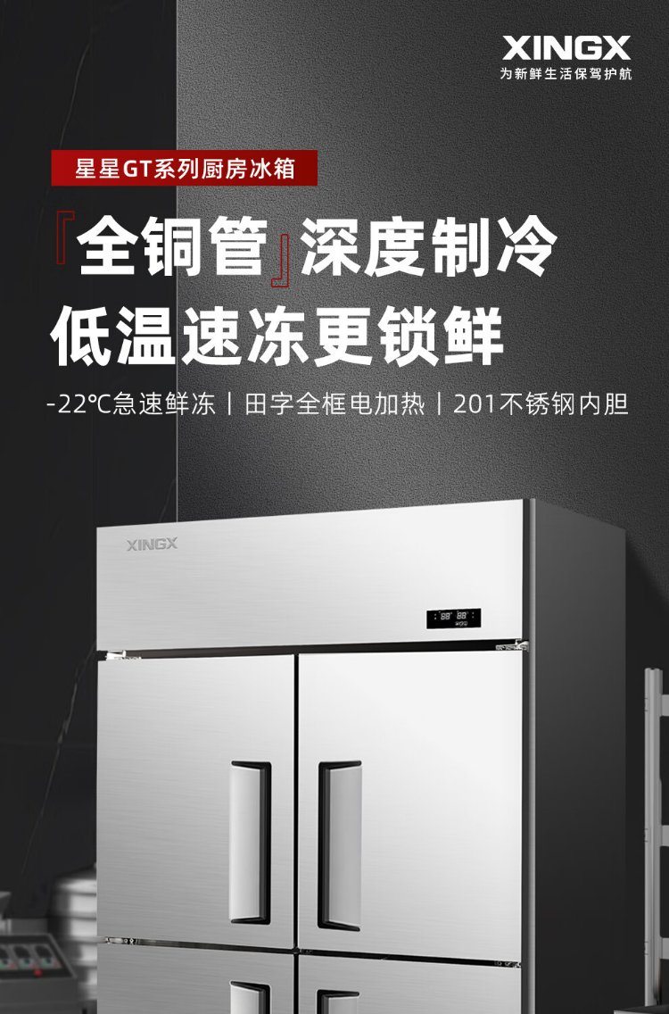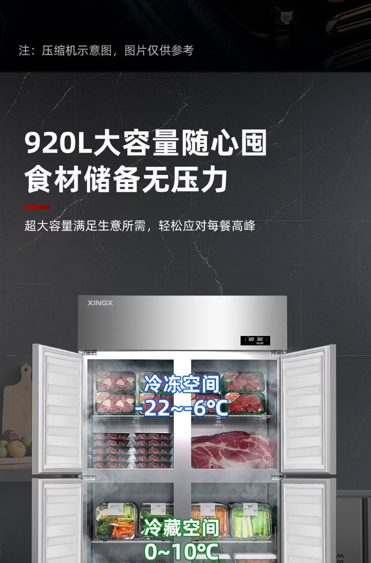 Star refrigerator commercial four-door refrigerator four-door commercial freezer large capacity refrigeration and freezing dual-use vertical freezer kitchen stainless steel fresh cabinet restaurant canteen hotel refrigerator