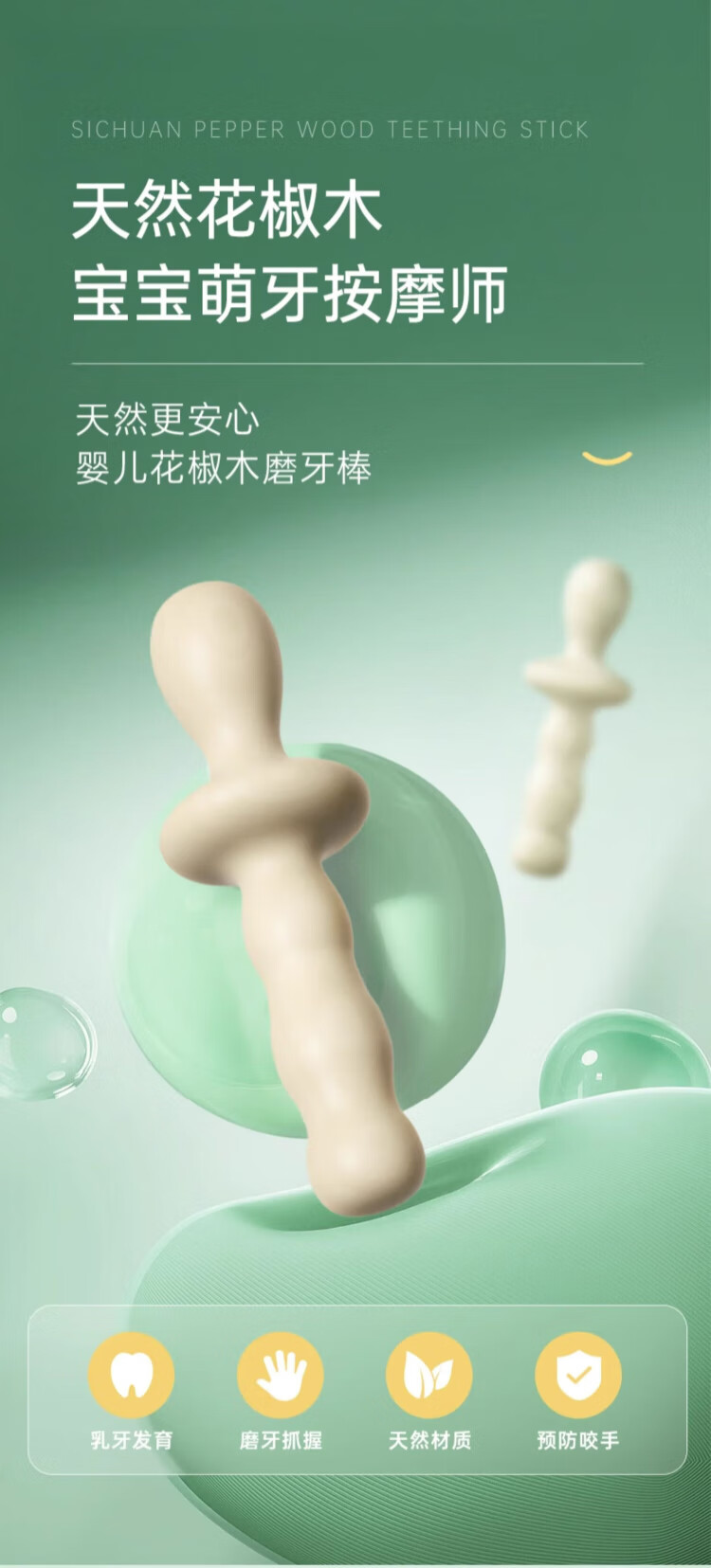 Licheers baby pepper wood molar stick 3-6 months baby teether infant oral period teething period pepper stick