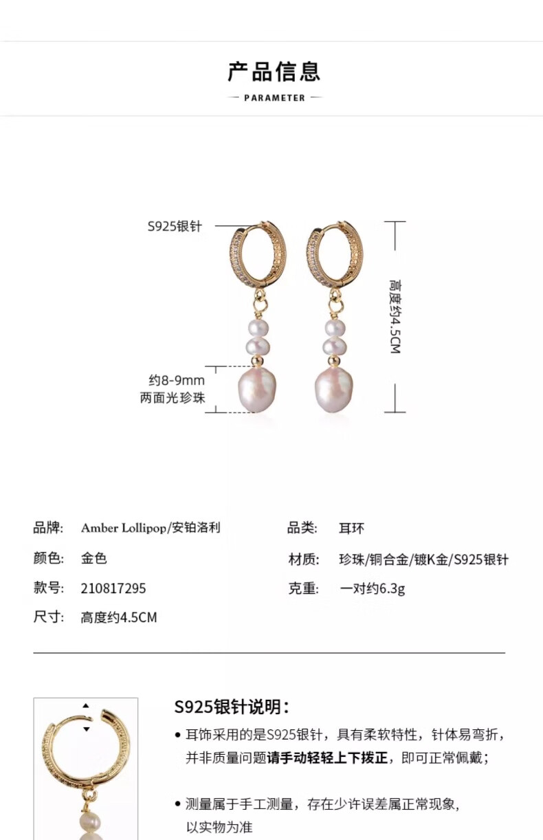 Amber Lollipop freshwater pearl earrings niche light luxury earrings women's earrings anniversary birthday gifts for girlfriend and wife