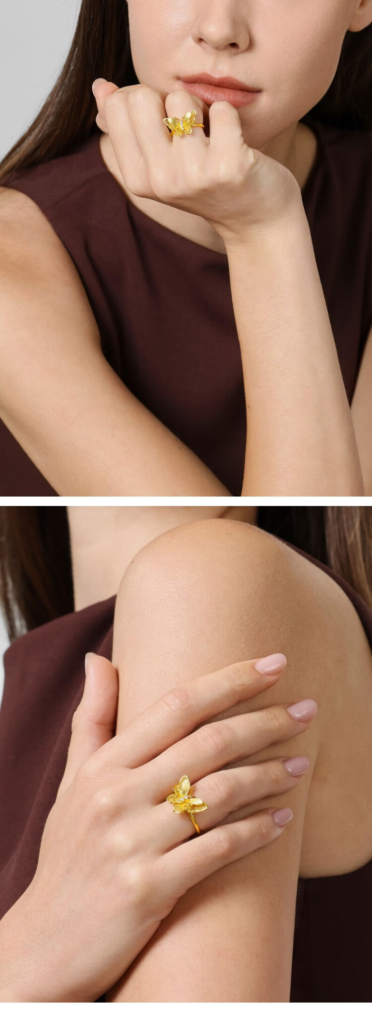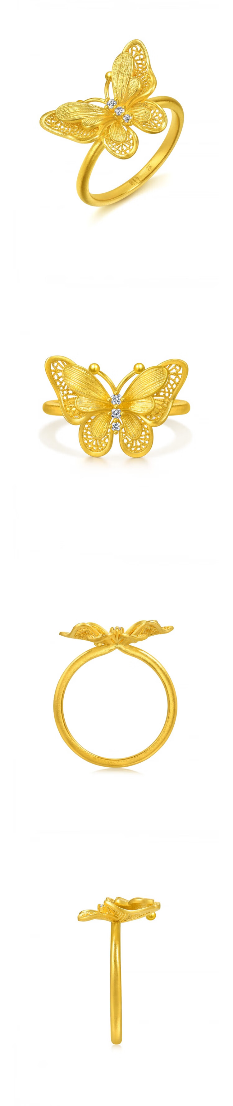 Chow Sang Sang Gold Ring Pure Gold Inlaid Diamond Butterfly Jewelry Gift Can Be Used as a Matching Ring 95851R Priced 13 Circles