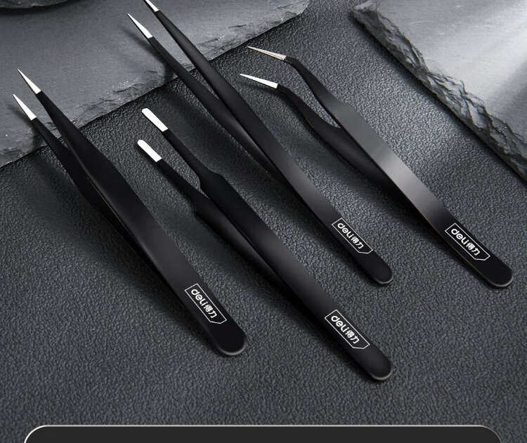 Deli tweezers tool set anti-static stainless steel high-precision repair gadgets kitchen plucking clips 4-piece set