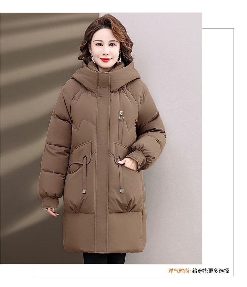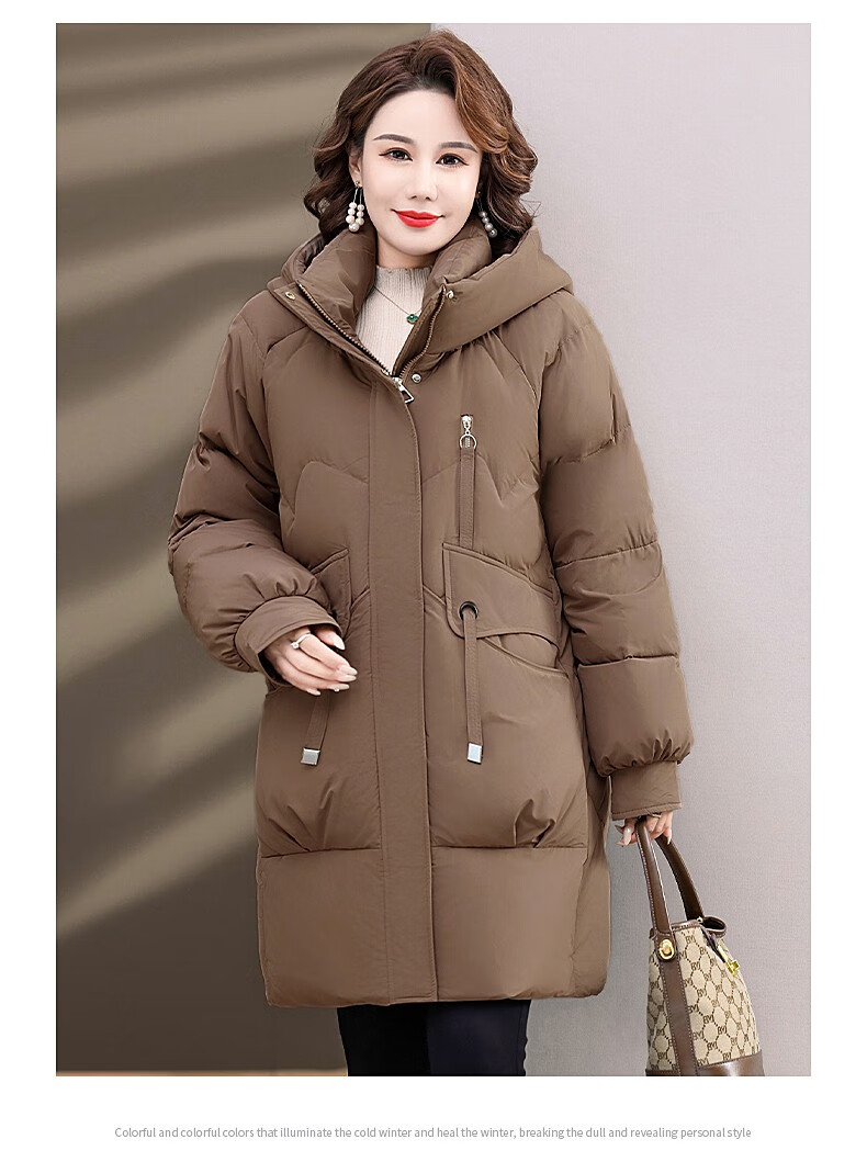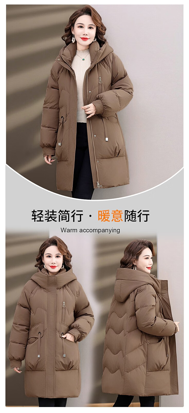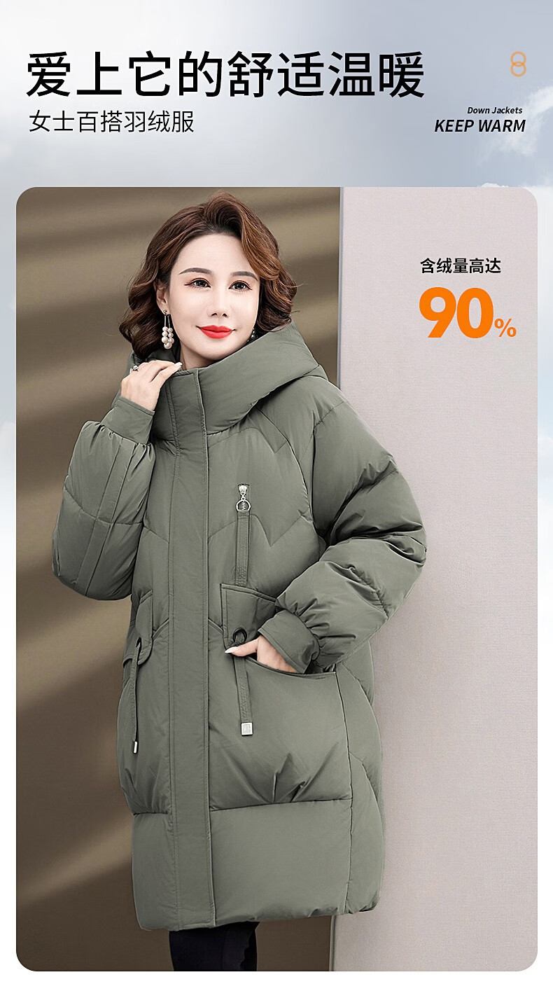 Yalu Mommy Down Jacket Women 2025 New Middle-aged Medium Long Hooded Warm Middle-aged and Elderly Loose Windproof Jacket