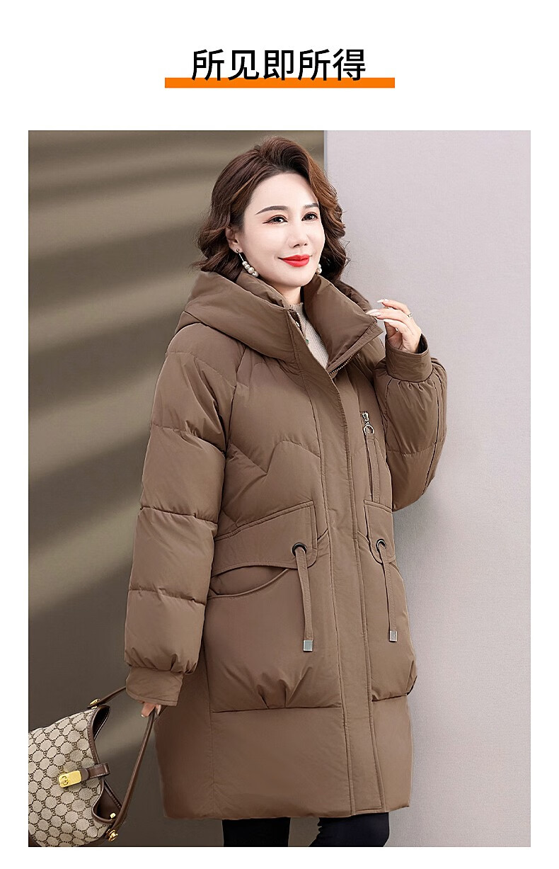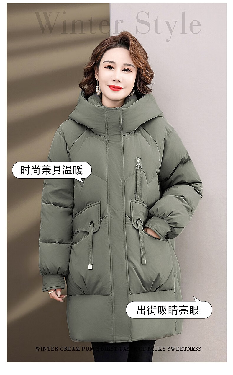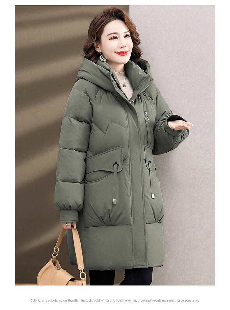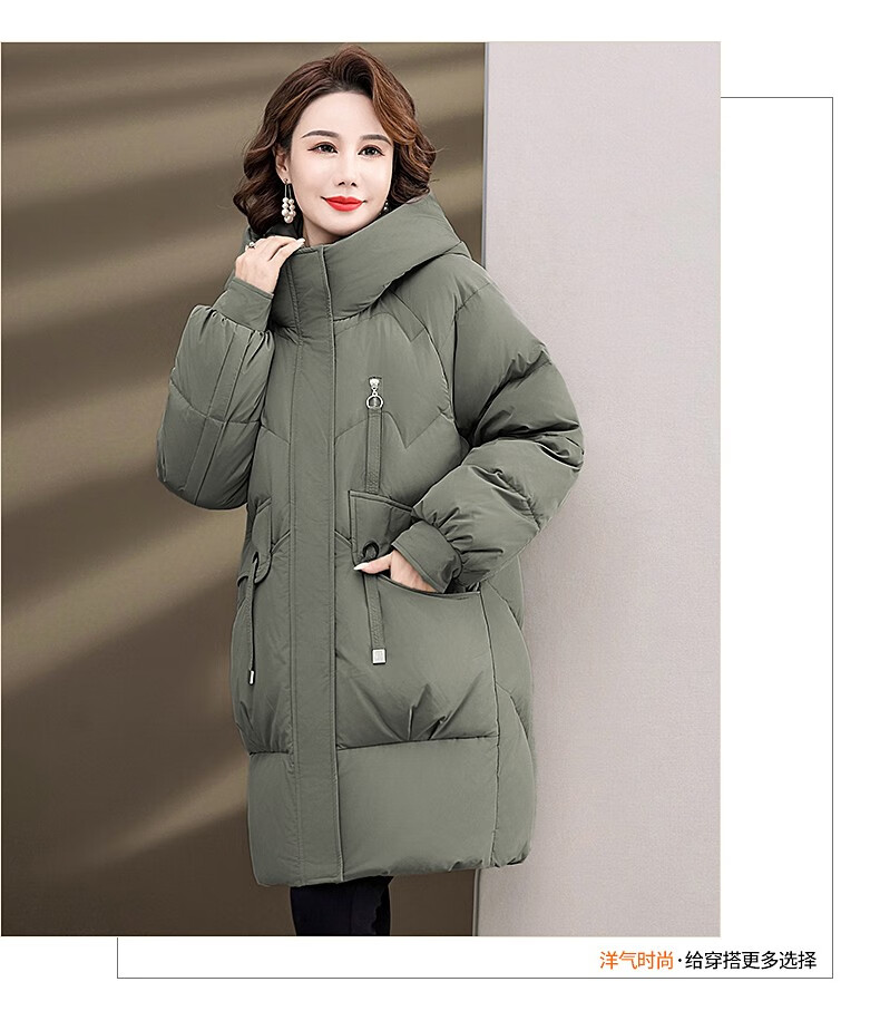 Yalu Mommy Down Jacket Women 2025 New Middle-aged Medium Long Hooded Warm Middle-aged and Elderly Loose Windproof Jacket