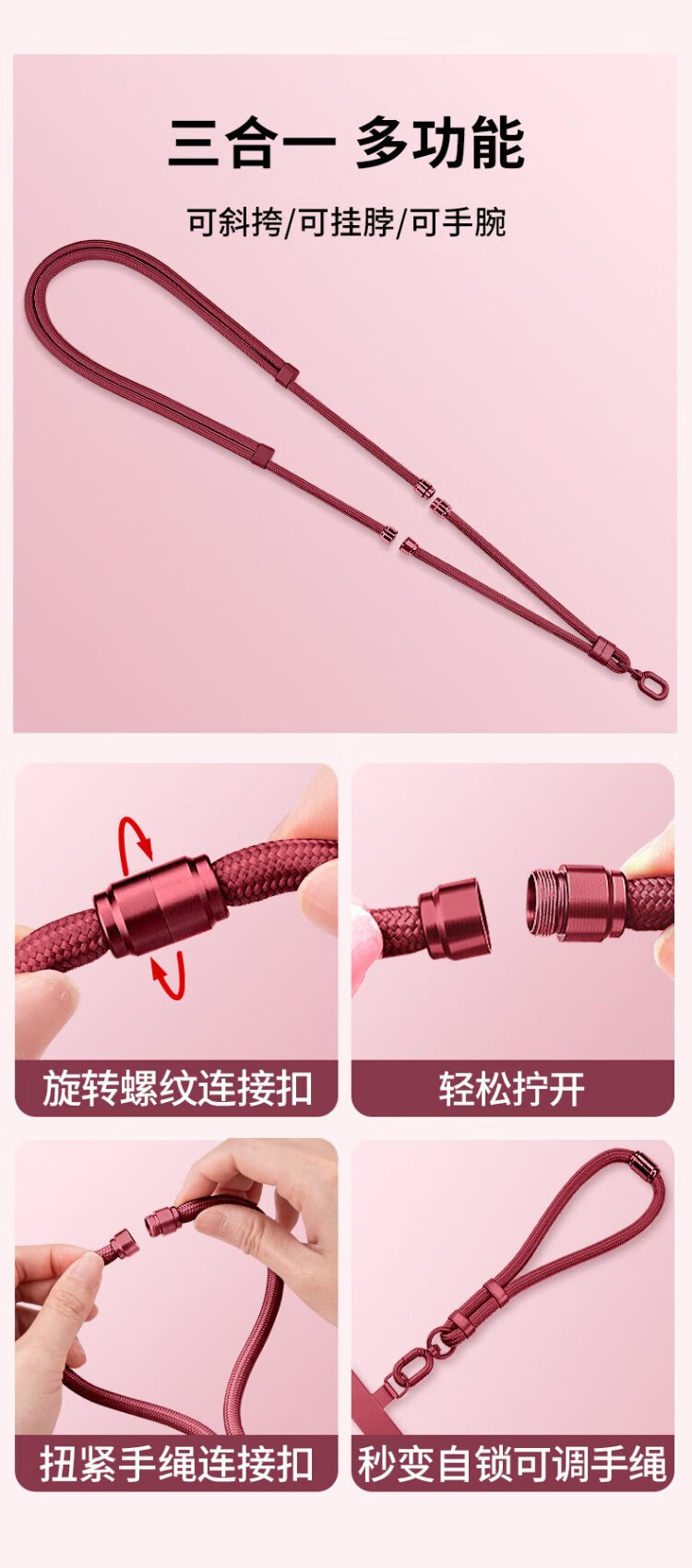 Yingyue mobile phone lanyard, neck chain, cross-body wrist gasket pendant with clip, European anti-theft artifact hanging chain, men's pendant, women's patch, defense loss, Faye Wong's same style three-in-one