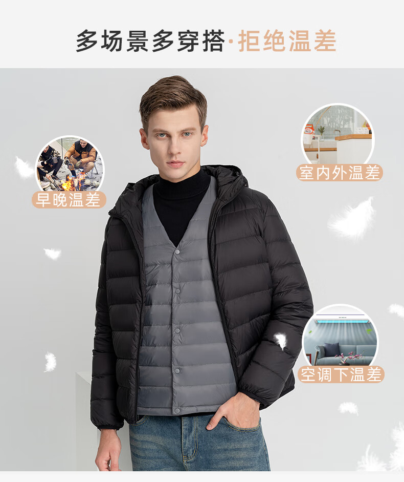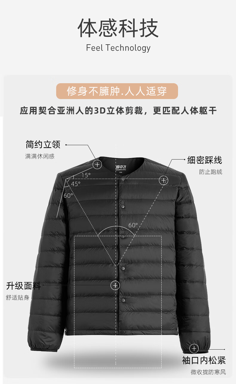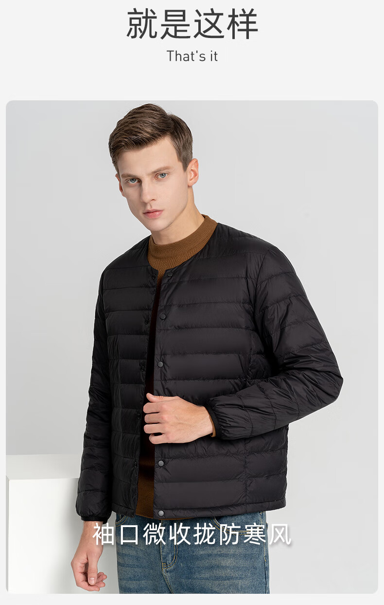 Flying in the Snow Classic Autumn and Winter New Fashion Warm Down Jacket Short Round Neck Simple Inside Down Down Liner Men's Inner Wear