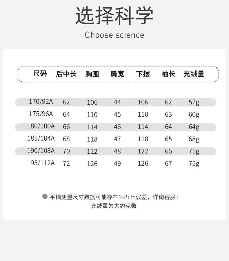 China (cm) 165 / 88-90 170 / 96-98 175 / 108-110 180 / 118-122 185 / 126-130