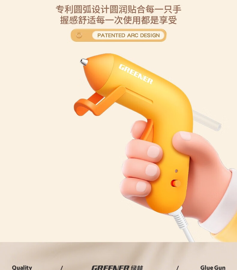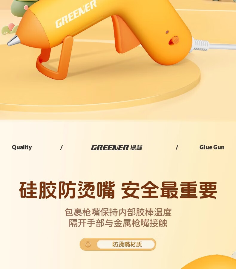 GREENER hot melt glue gun for household children's handmade kindergarten diy high-viscosity glue gun lemon pomelo yellow free 30 pieces of 0 formaldehyde glue sticks