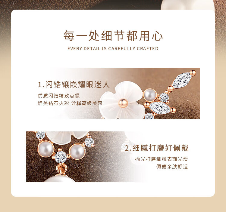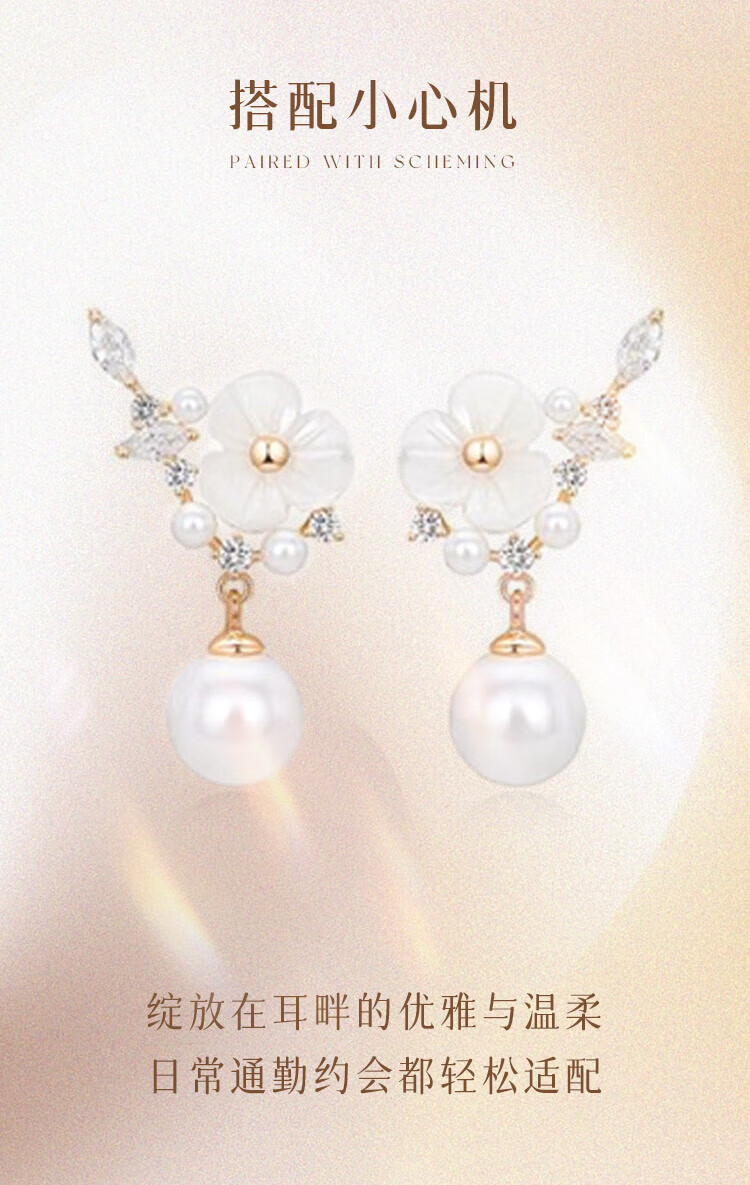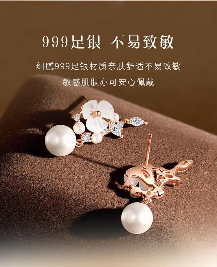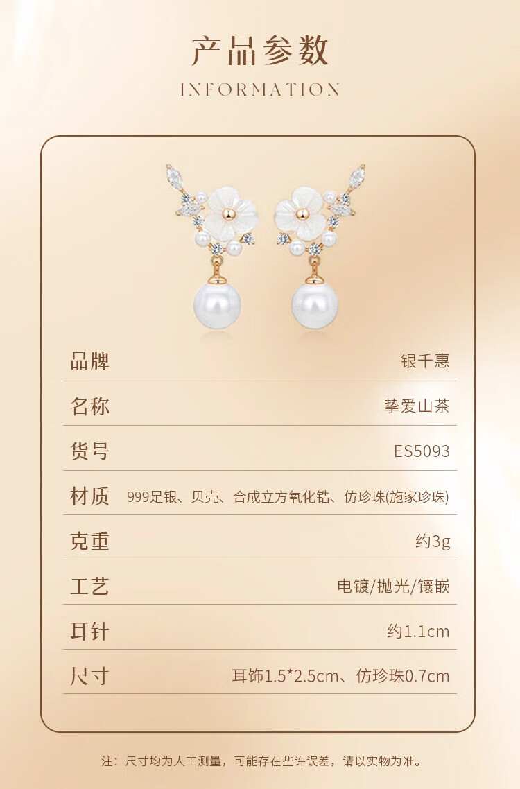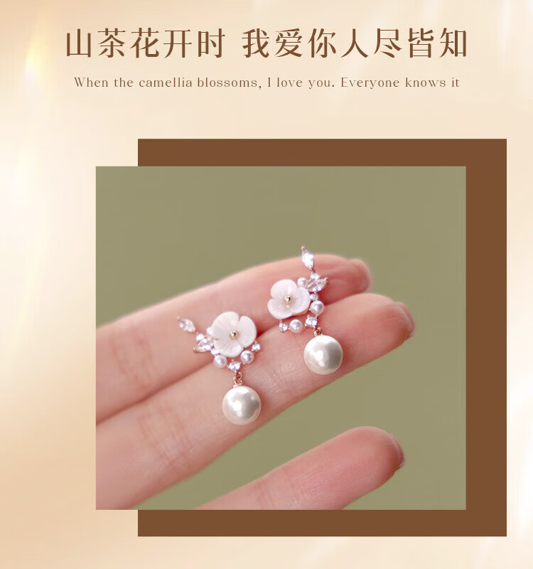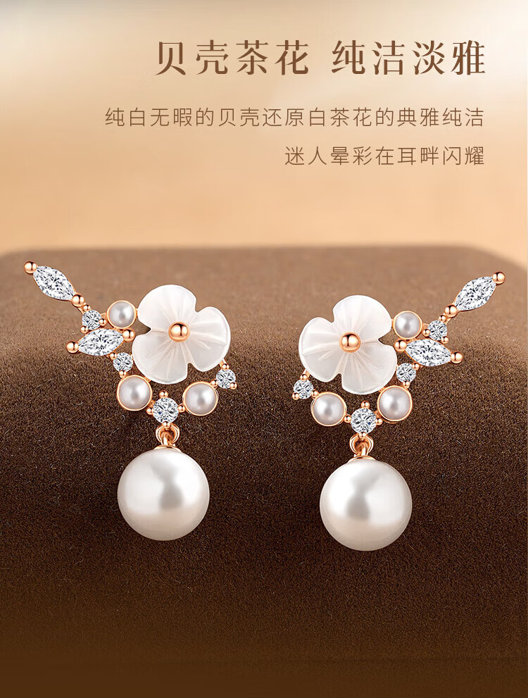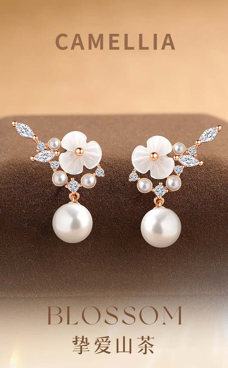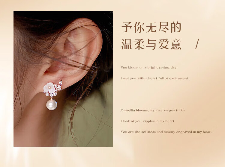 Gin Chie 999 sterling silver camellia pearl earrings women's earrings drop earrings Valentine's Day birthday gift for girlfriend and best friend