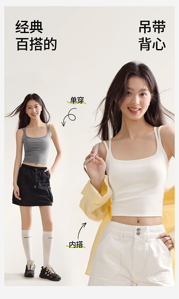 JOAE suspender feminine double shoulder strap small camisole women's outer wear beautiful back inner wear sleeveless bottoming shirt top white XL