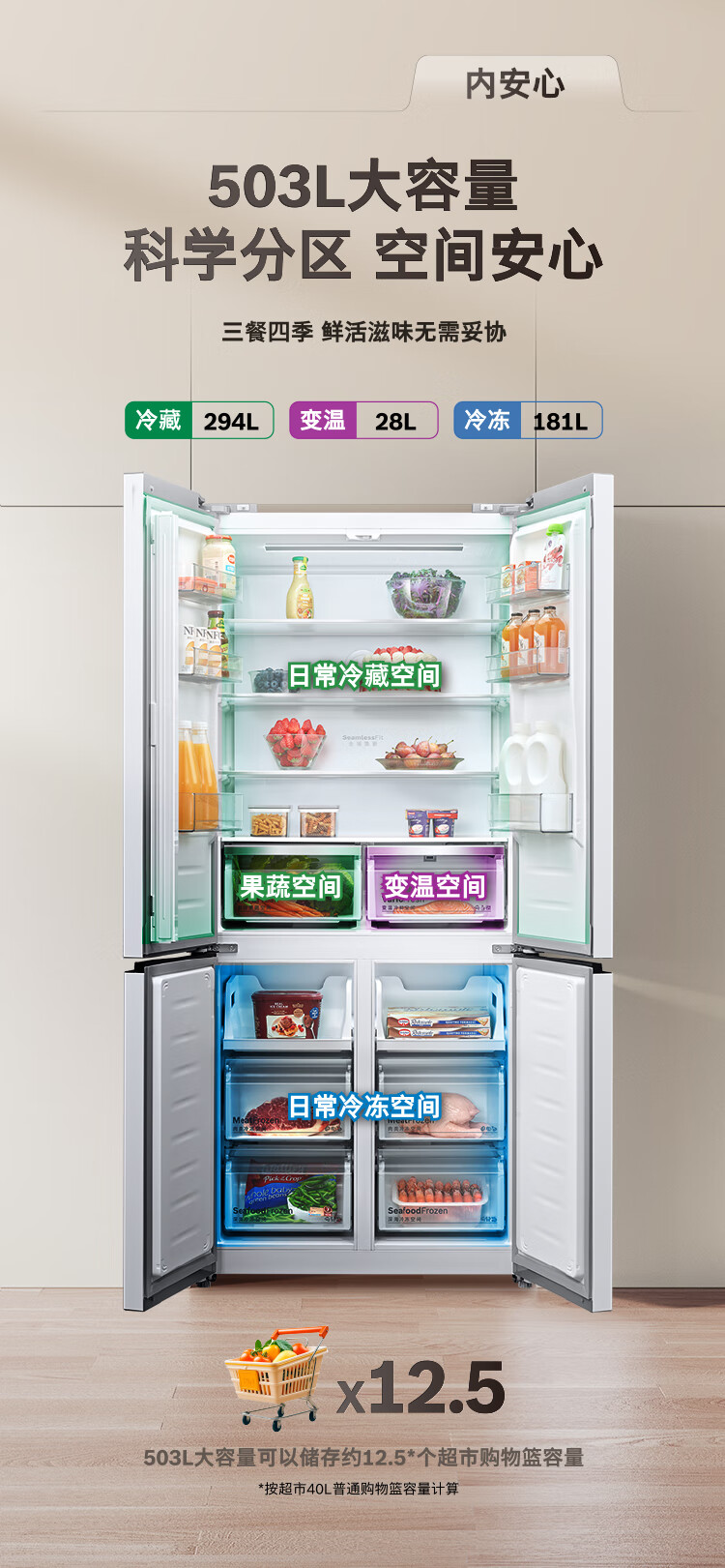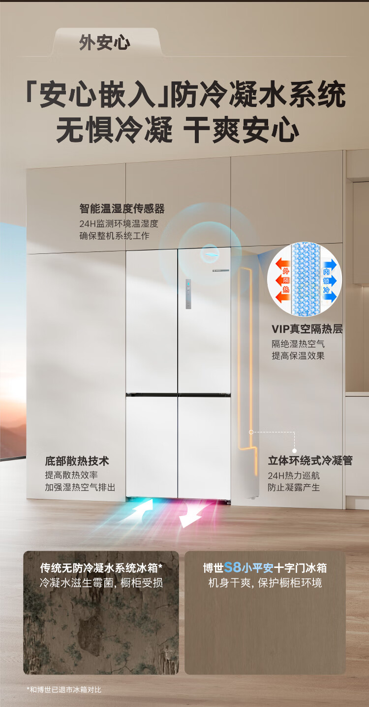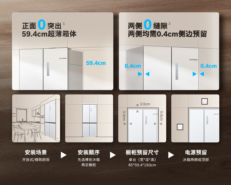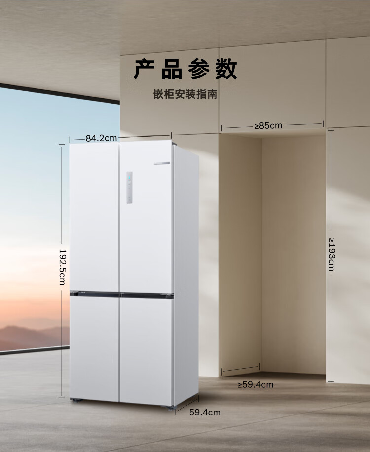 Bosch (BOSCH) Xiaopingan S8 503L cross-door refrigerator ultra-thin zero-embedded flush-mounted large capacity anti-condensation water system variable temperature antibacterial and odor-free KCP50A20TI national subsidy 20%