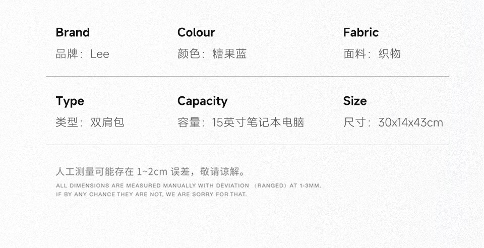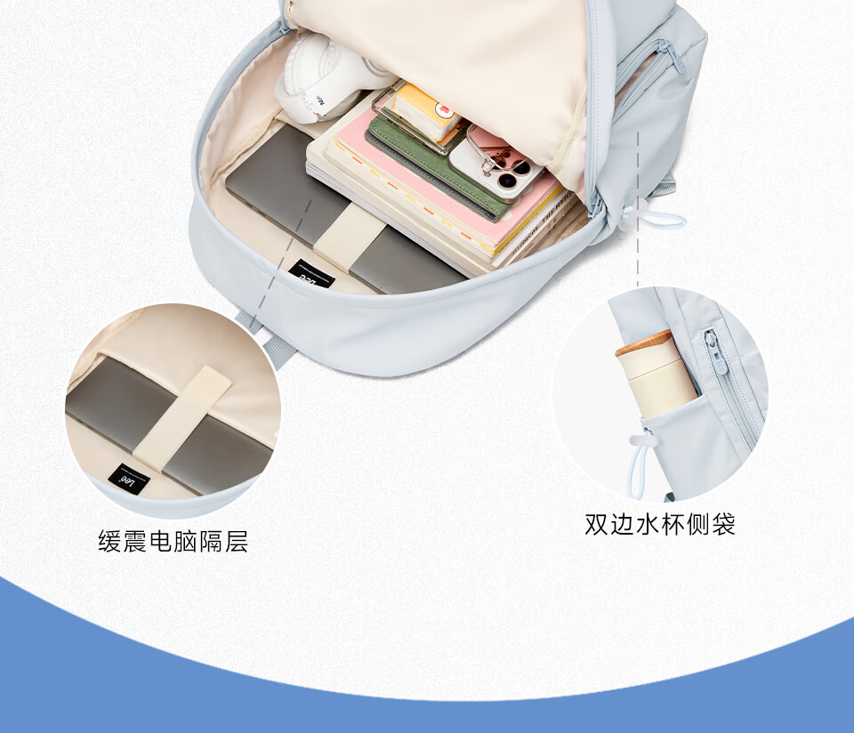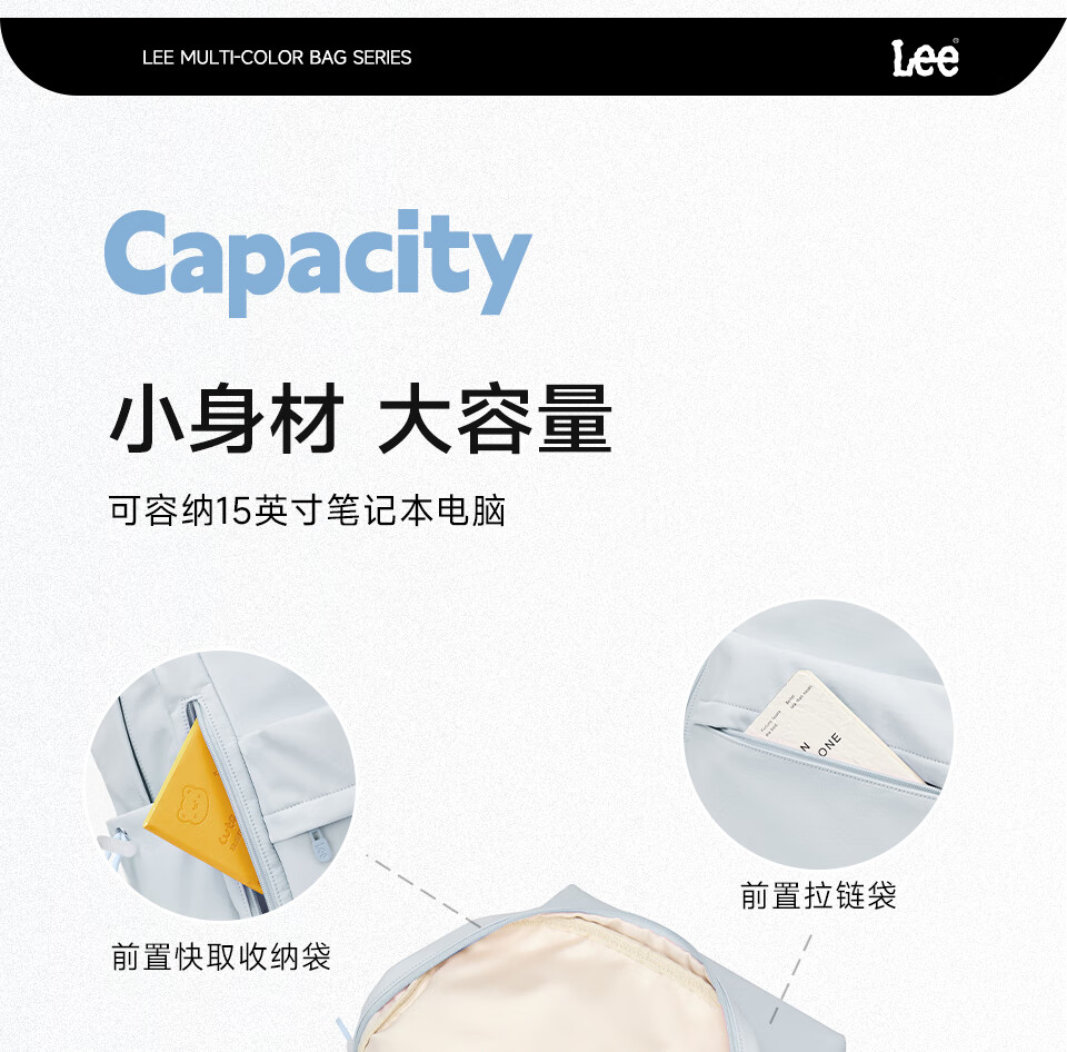 Lee schoolbag female junior high school student large capacity casual lightweight backpack college student computer bag travel backpack candy blue