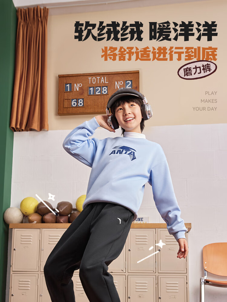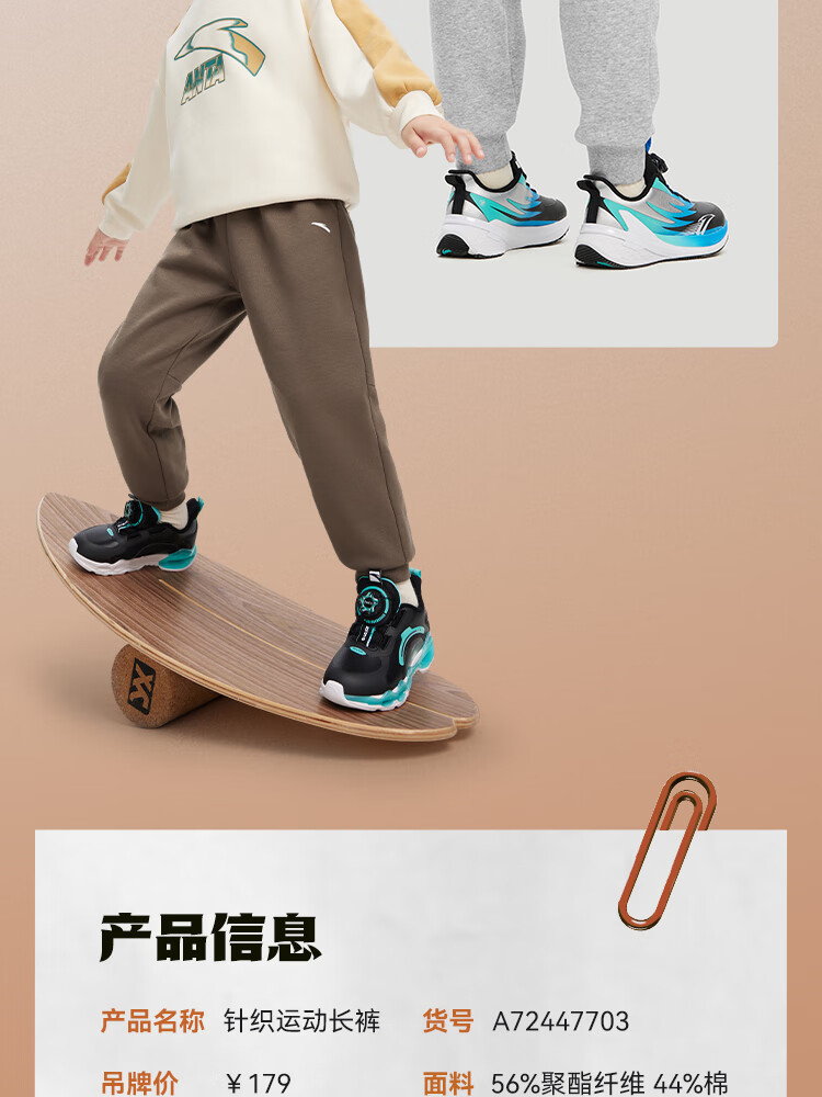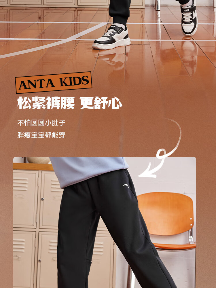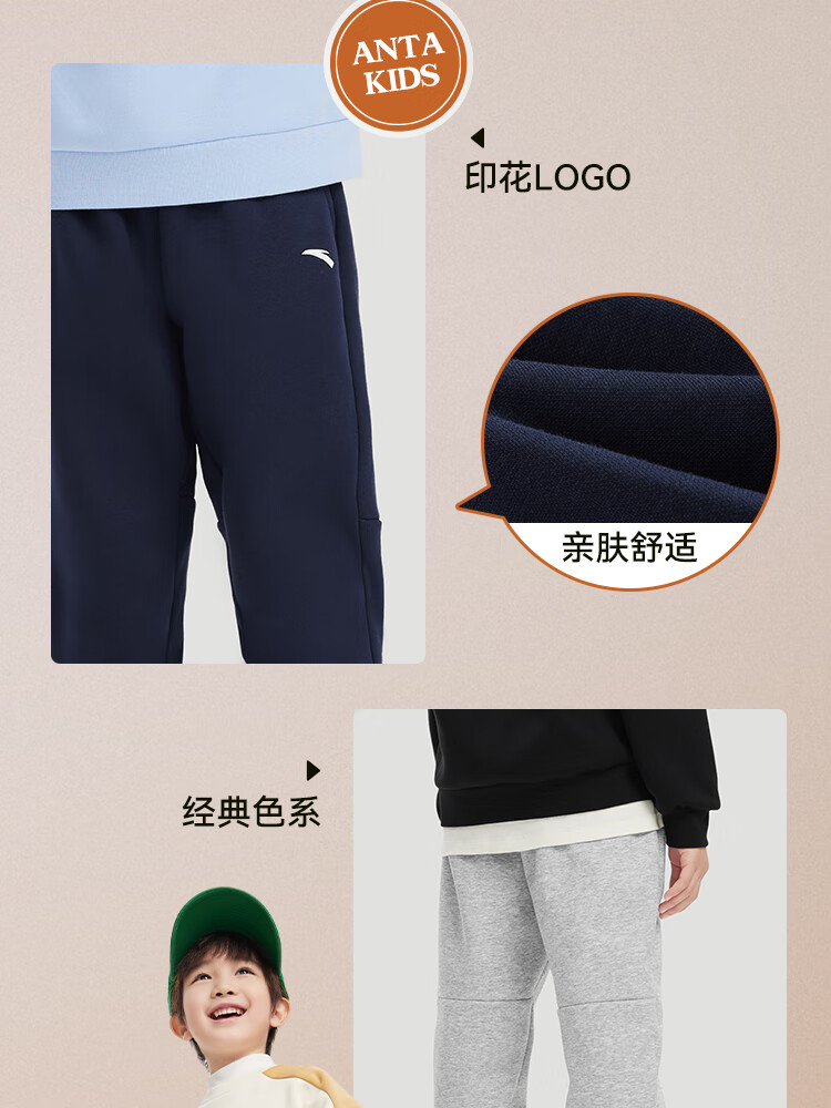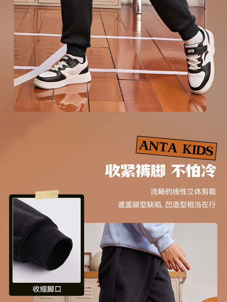 ANTA children's pants for men and women 2024 winter plus velvet warm knitted sports pants A72447703J