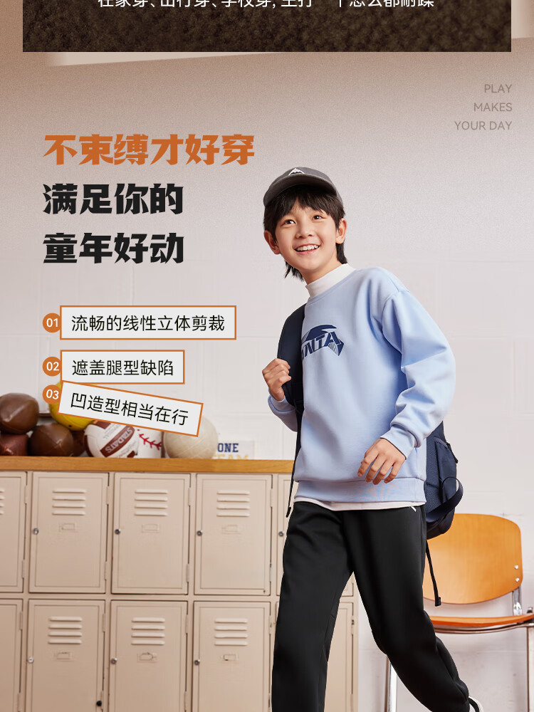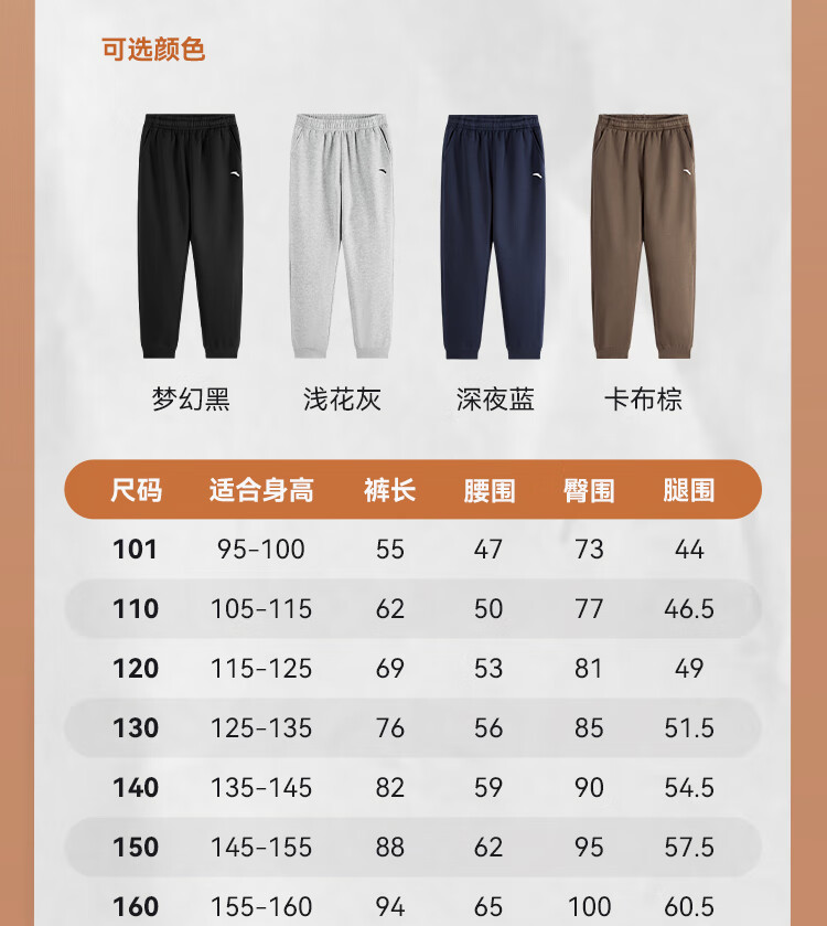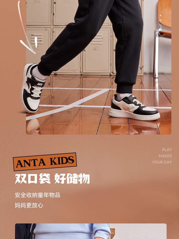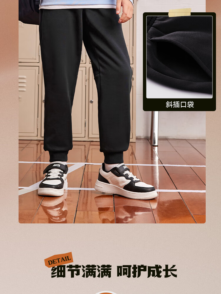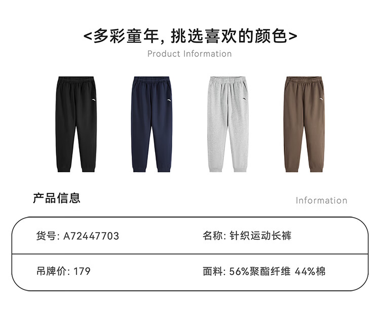 ANTA children's pants for men and women 2024 winter plus velvet warm knitted sports pants A72447703J